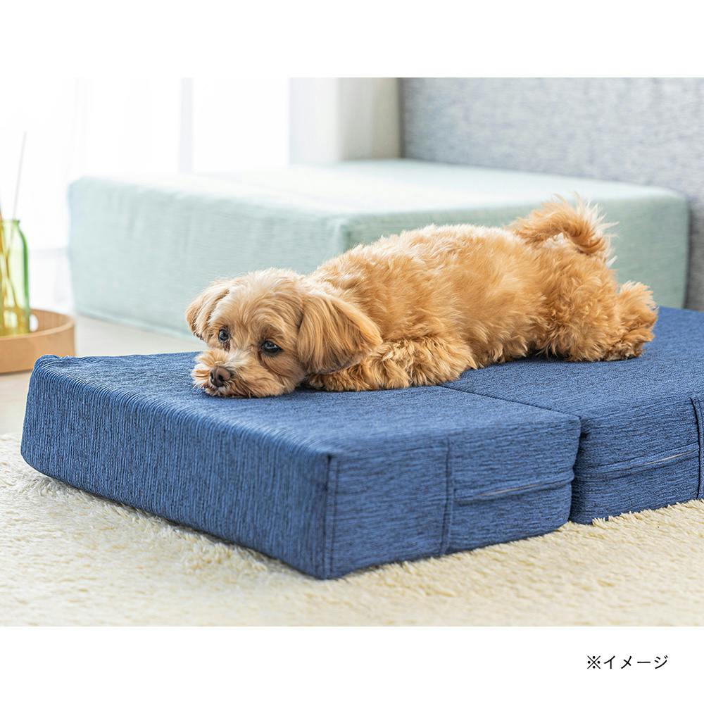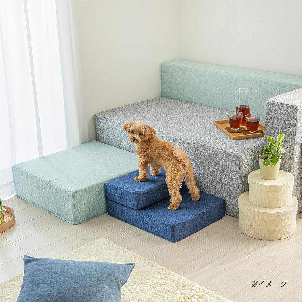 折りたためばステップになるペットマット。重ねて使えば3段タイプでも使用可能。床にしっかり固定できるピタパ滑り止め。ブロックソファとのコーディネート