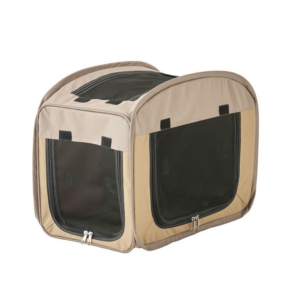 コンパクトに畳んで収納できるバッグ付き。通気性の良い、メッシュ窓。飛び出し防止リード付き。