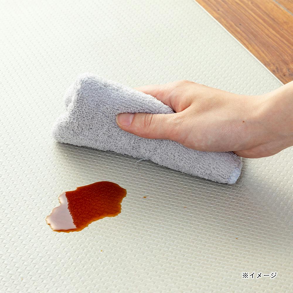 L字の折り目がキッチンと床の隙間にぴったりフィットし、ごみが溜まりにくい。抗菌、防炎、防カビ、厚み6mmのクッション性、水や汚れもサッと拭くだけお手入れ簡単