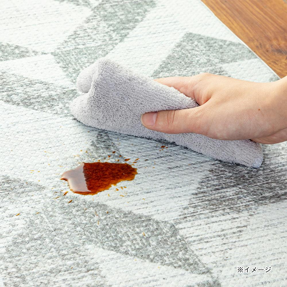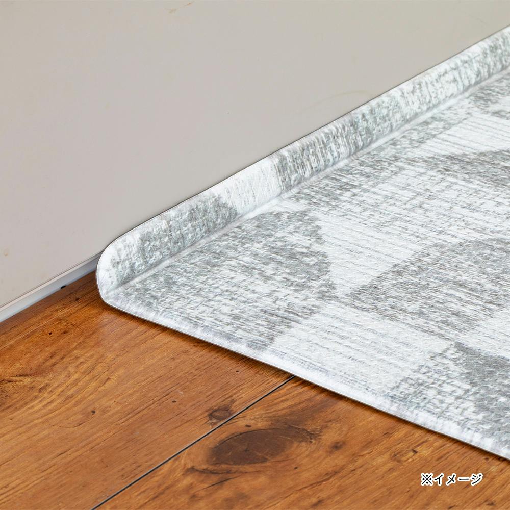 L字の折り目がキッチンと床の隙間にぴったりフィットし、ごみが溜まりにくい。抗菌、防炎、防カビ、厚み6mmのクッション性、水や汚れもサッと拭くだけお手入れ簡単