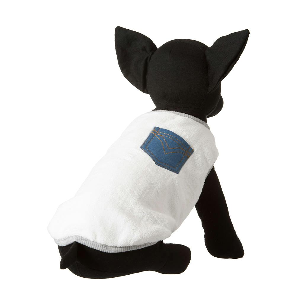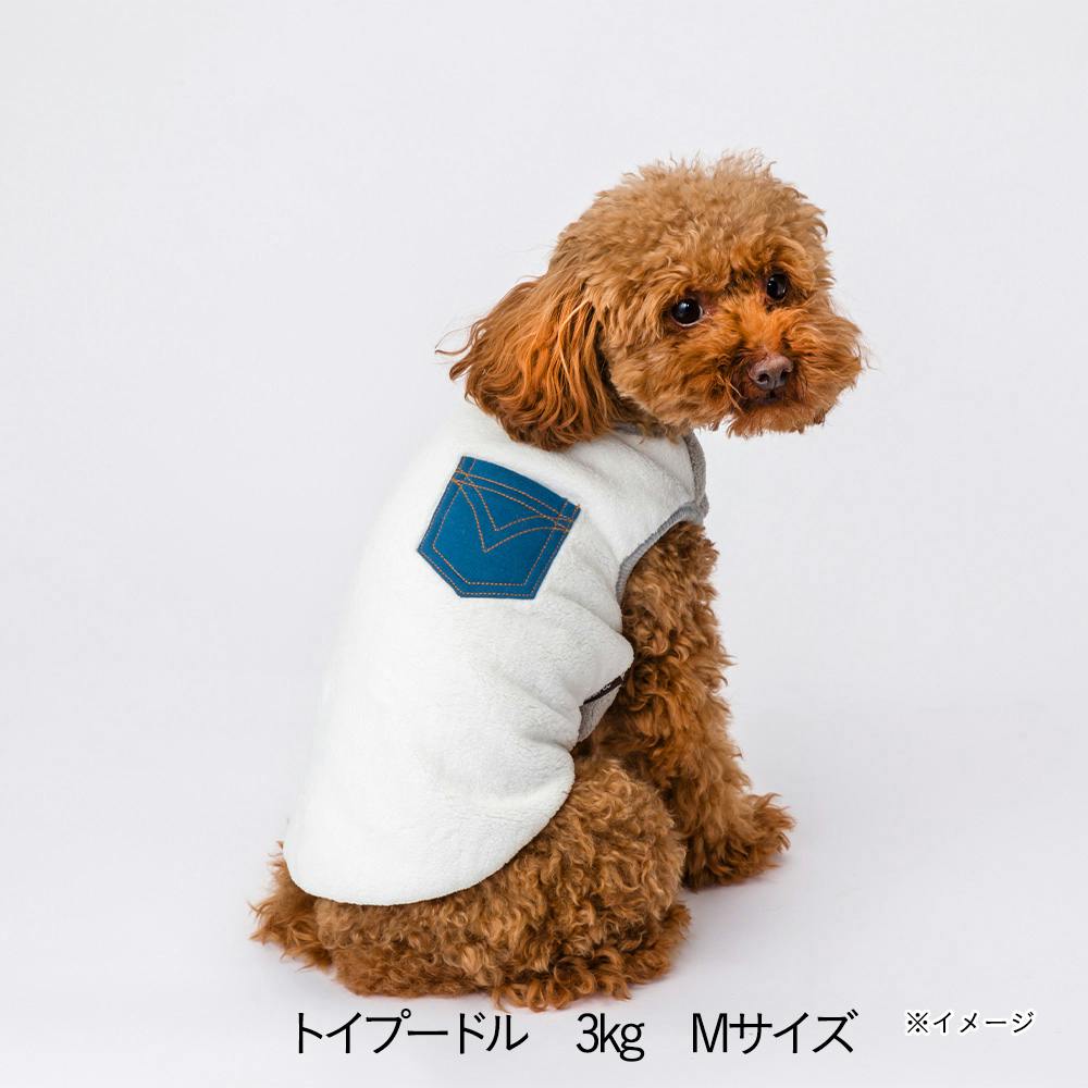 ポケット付きボアカットソー ホワイト Mサイズ ペット服(犬の服)