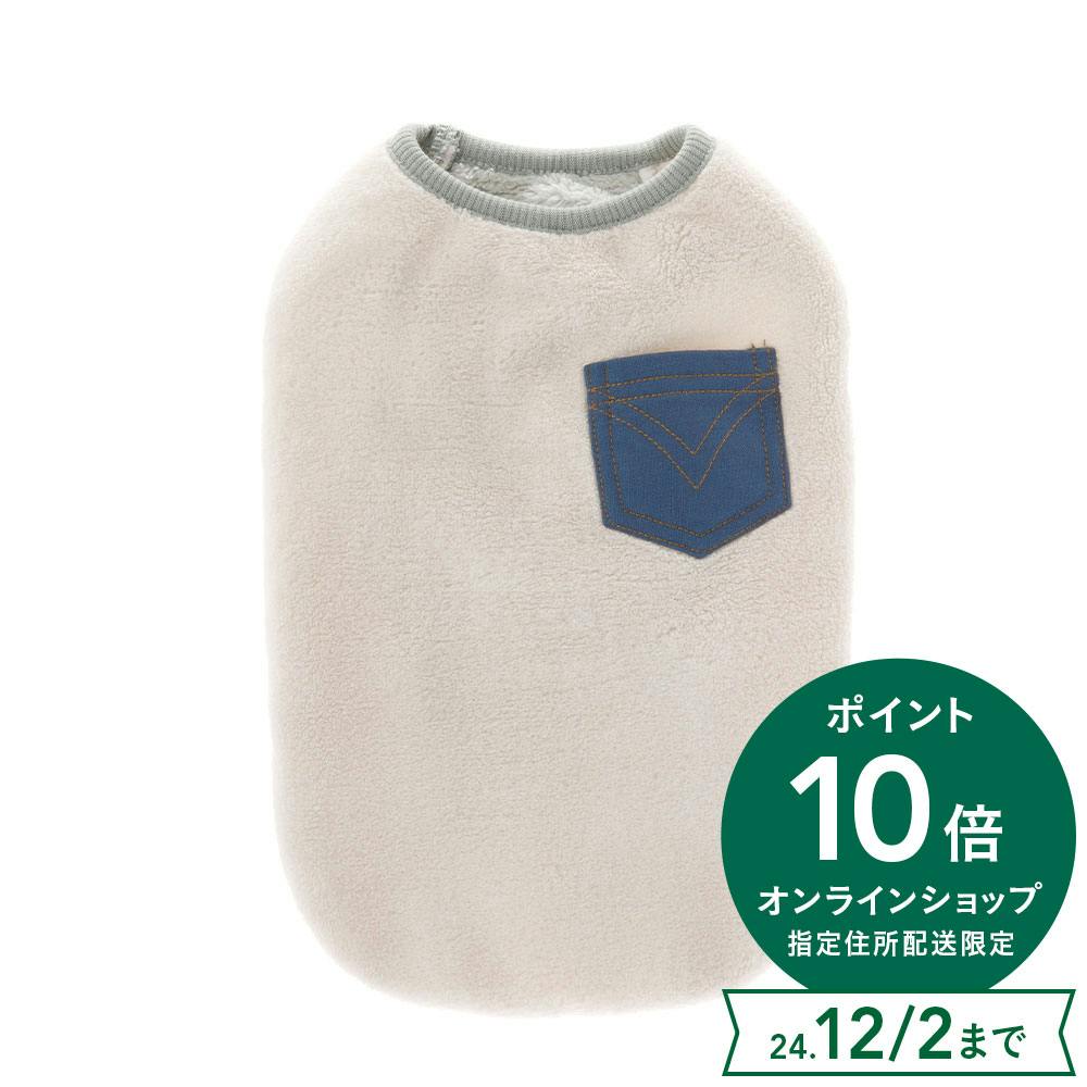 ポケット付きボアカットソー ベージュ Lサイズ ペット服(犬の服)