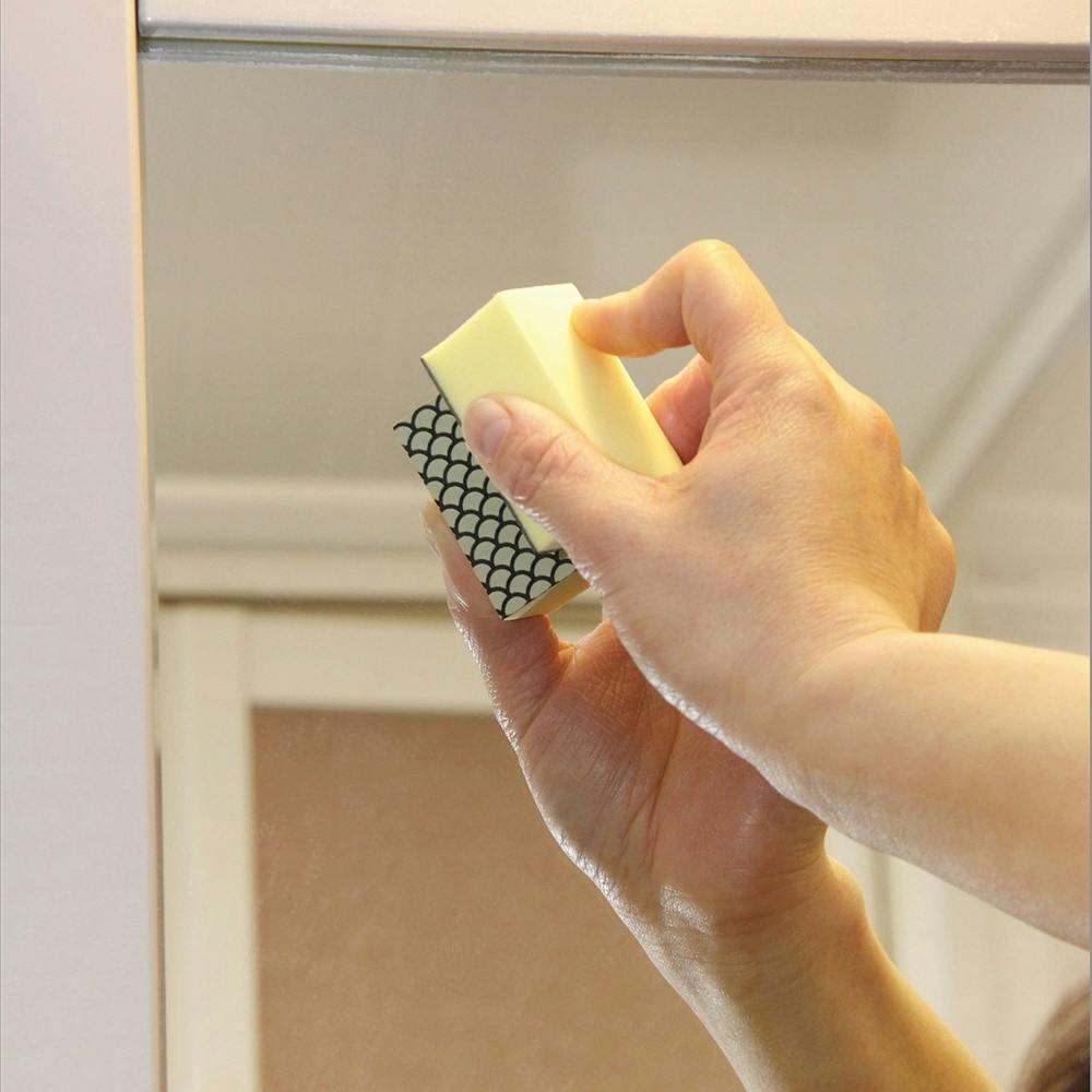 浴室・トイレ・洗面台の鏡や透明ガラス面、衛生陶器についたガンコな汚れ落とし、繰り返し使える優れものです。研磨面に『人工ダイヤモンド』を使用、洗剤を使わず水だけで汚れを落とすクリーナーです。軽くこするだけで、落ちにくい鱗状痕(ウロコ汚れ)などのガンコな汚れが落とせます。