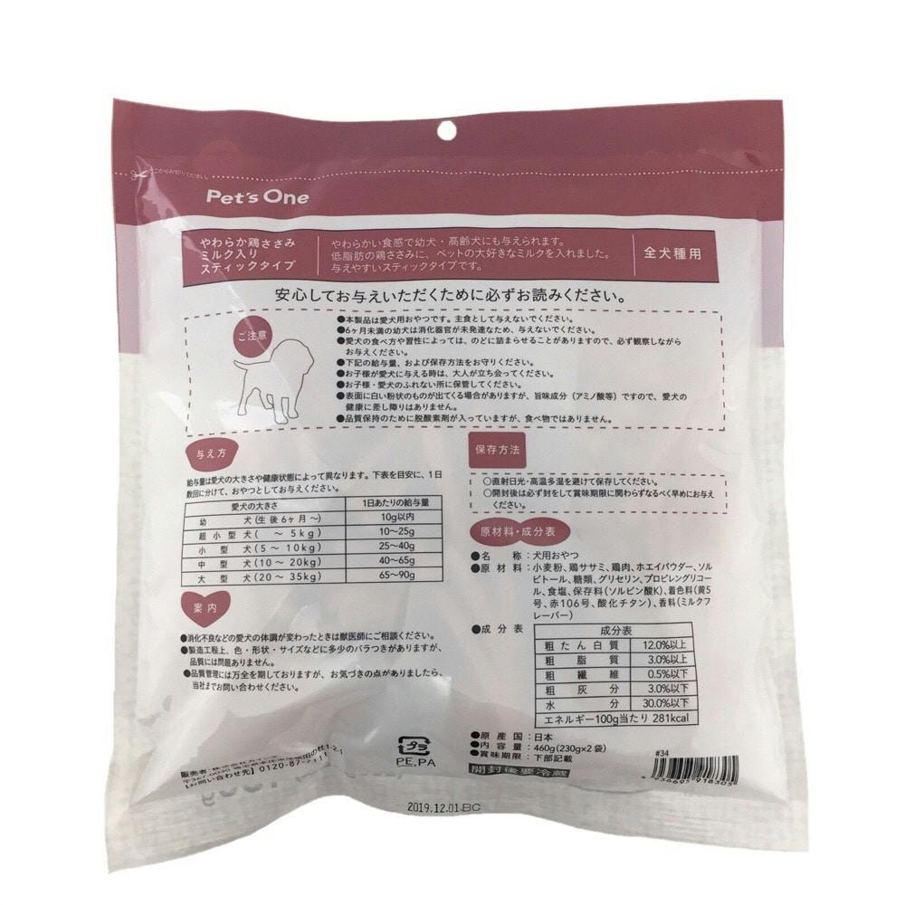 Pet’sOne やわらか鶏ささみ ミルク入り スティックタイプ 460g