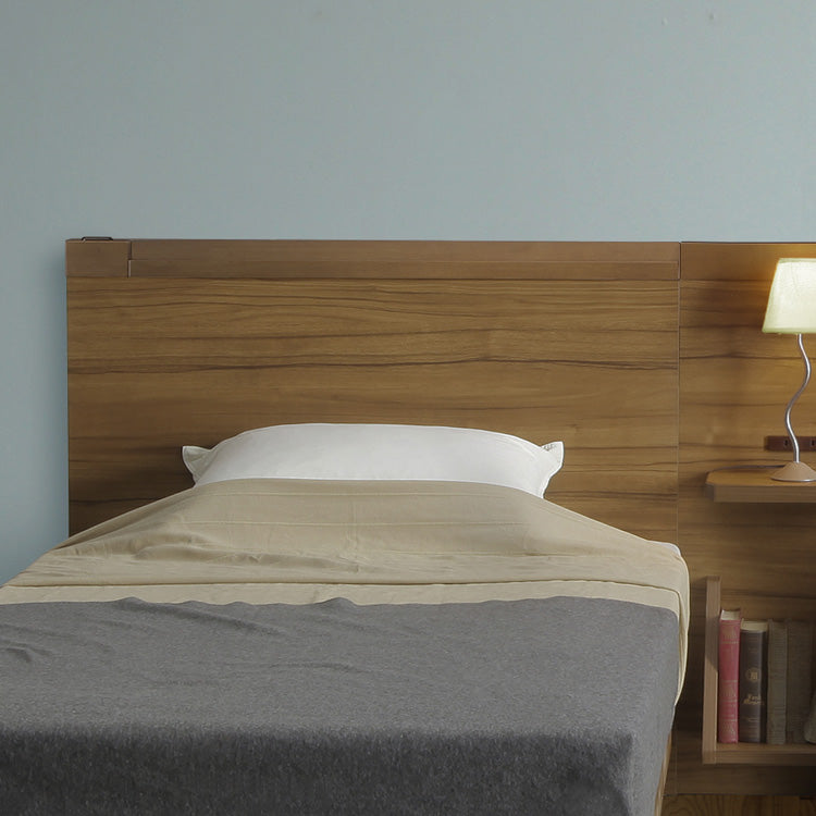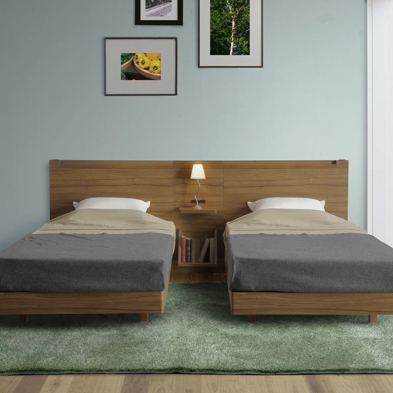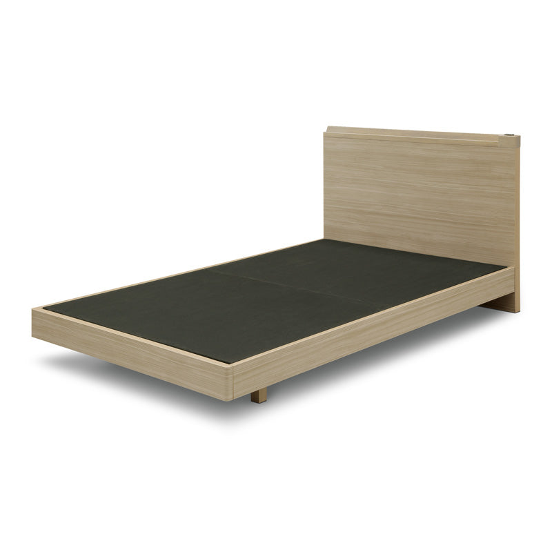 無駄のないシンプルでスタイリッシュなデザインのベッドです。高級感溢れるホテルライクな空間を演出してくれます。ベッドのヘッドボードには、スマートフォンなどを立てかけて置けるスペースと1口コンセントが付属しています。スマホスタンドとコンセントの位置は左右付け替えが可能です。