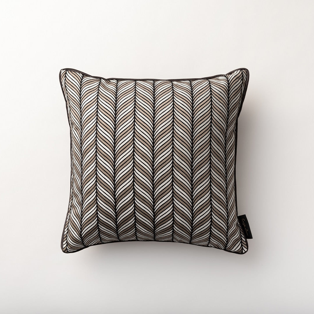 「ロープのねじれ」というシンプルでユニークな構造をすっきりと表現した、リッチでエレガントなジャガード生地に、滑らかでずっと触っていたくなるような高品質のベルベット生地を合わせました。幅広いコーディネートに上質さをプラスしてくれます。※こちらの商品は中材が別売りの商品です。カバーと一緒に中材をご購入頂く場合には、お得なセット価格でご提供しております。スモールフェザー100%のクッションはへたりにくく、長く快適にお使いいただけます。ぜひこの機会にご検討ください。