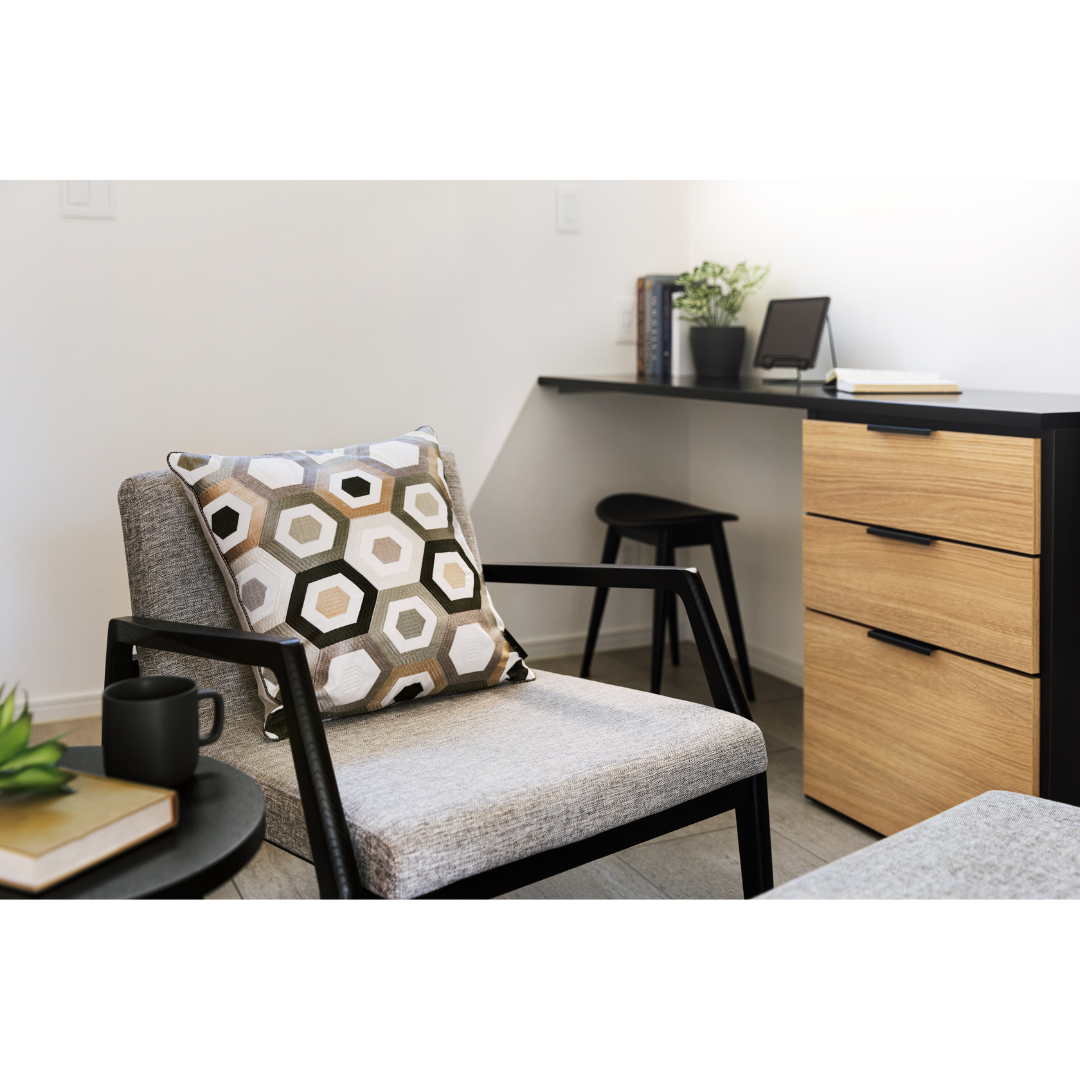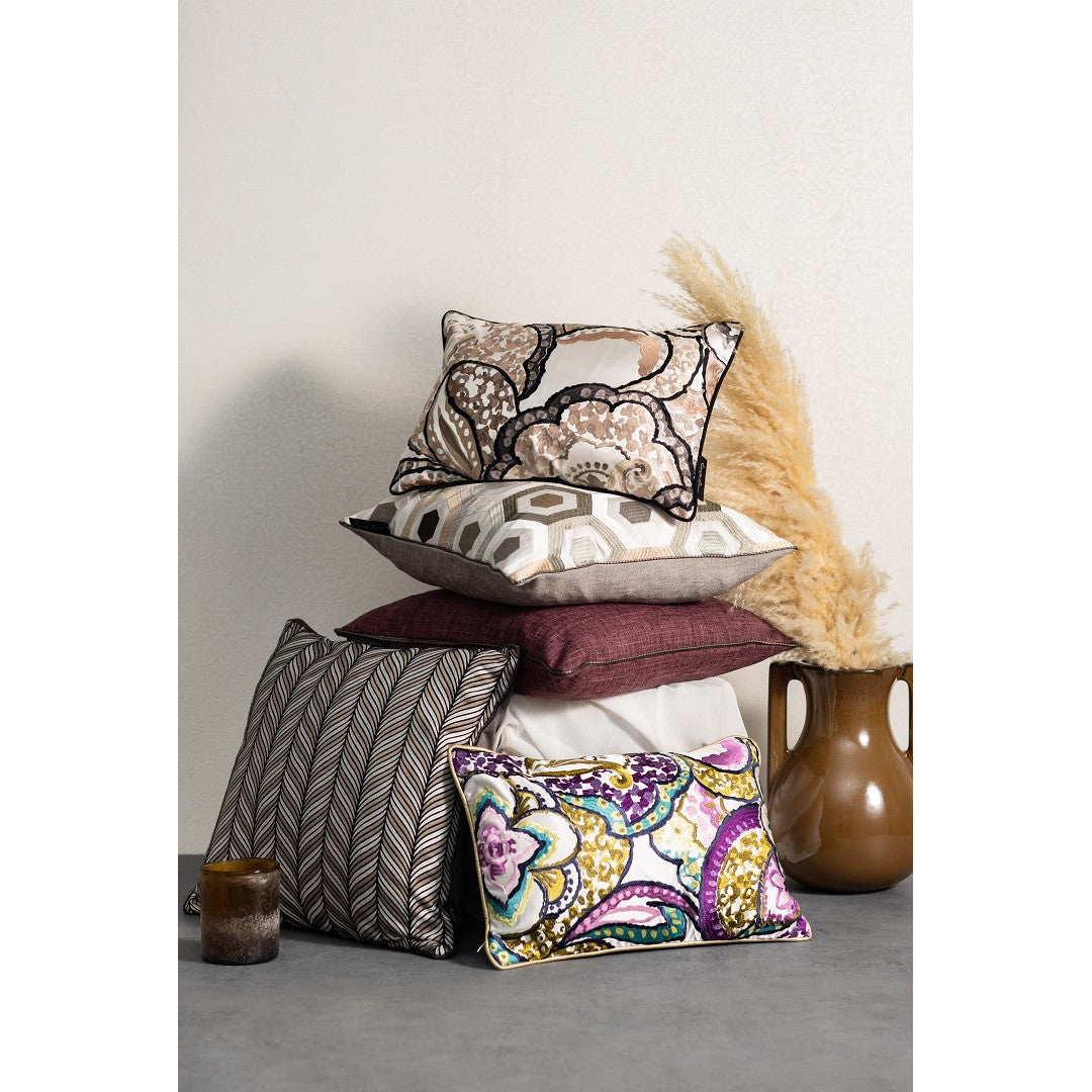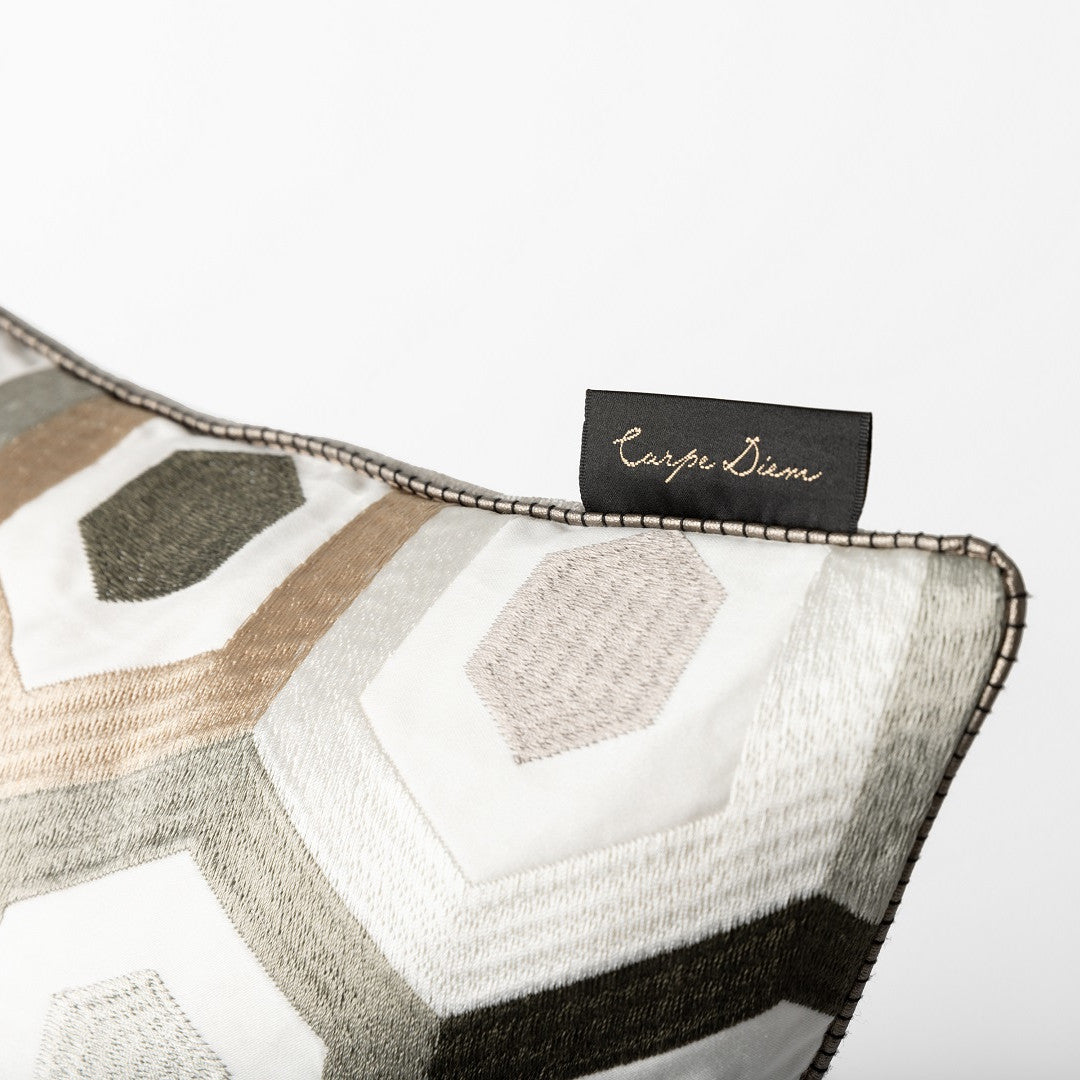 レトロでヴィンテージ感のある六角形の幾何学的なデザインが全面にサテン刺繍された生地に、重厚感のあるフルボディの柔らかいシェニール生地を合わせました。モダンでシックなお部屋からナチュラルなお部屋まで、幅広いコーディネートに上質さをプラスしてくれます。※こちらの商品は中材が別売りの商品です。カバーと一緒に中材をご購入頂く場合には、お得なセット価格でご提供しております。スモールフェザー100%のクッションはへたりにくく、長く快適にお使いいただけます。ぜひこの機会にご検討ください。