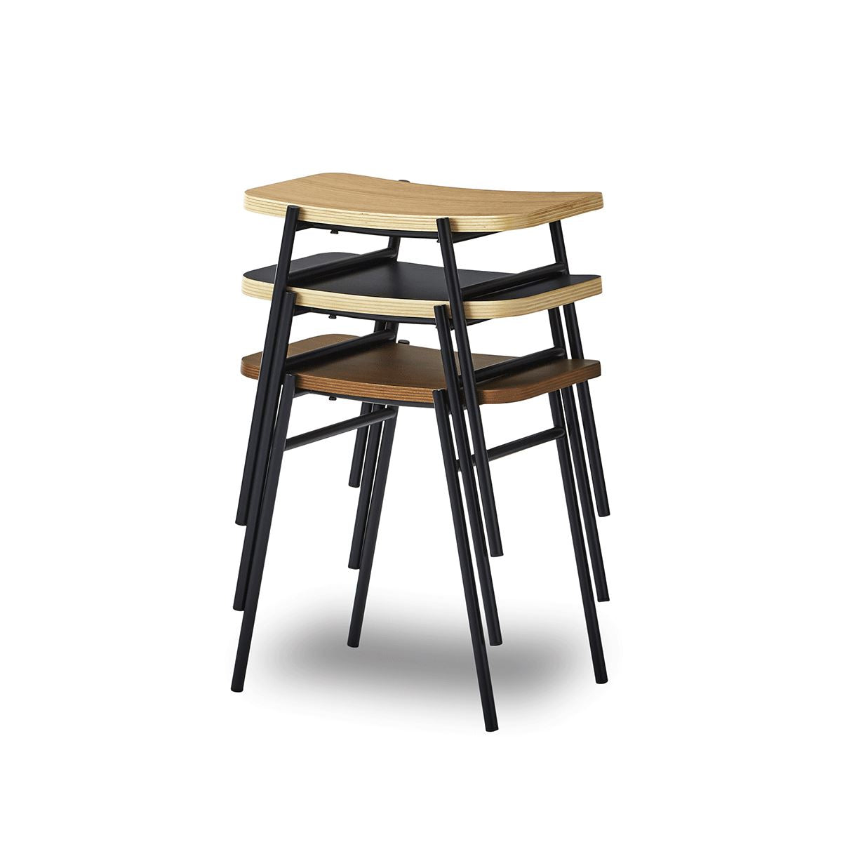 スタッキングしてコンパクトに収納できる便利なスツールです。重ねたときに姿も美しいようにデザインされています。ダイニングだけでなくリビングや寝室などにも気軽に置けるアイテムです。