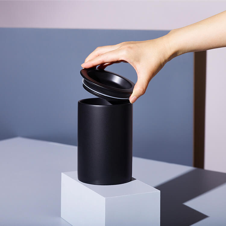 毎日のコーヒーライフに欠かせないものだから、使いやすさや機能はもちろんのこと、質感やフォルムにもこだわりました。歴史ある陶磁器の産地「岐阜県多治見」にある老舗メーカーで丁寧に作られています。細部にまでこだわった、高品質のキャニスターです。シンプルで直線的なフォルムと、温かみのある質感で、日々のコーヒーライフにふさわしい、飽きのこない佇まいを目指しました。