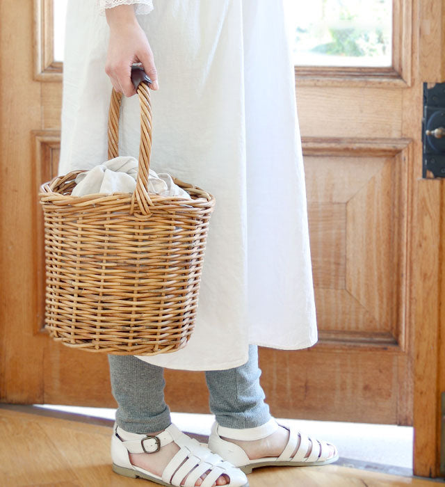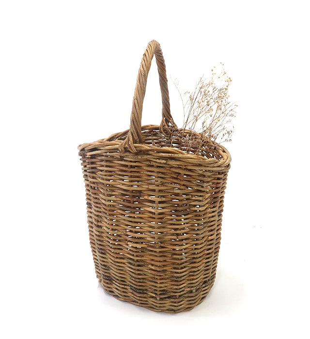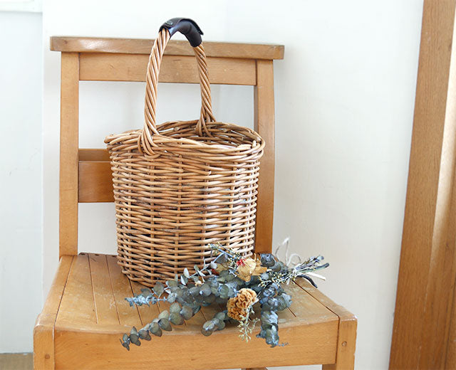 夏だけでなく冬も人気の天然素材アラログ使用のカゴバッグ。 アンティーク感を残すため、表皮をそのまま編みこんでおり、 なんともいえない味が人気です。 持ち手部分をリボンを巻いてアレンジするなど、お楽しみいただけます。