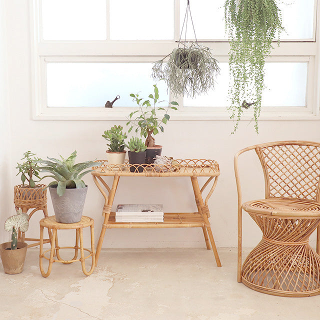 すべて天然素材で作られているアイテムですので 使い込むにつれ色艶が増し、きれいな飴色に変化していきます。 経年劣化もラタン家具の醍醐味ですので、お楽しみくださいませ。
