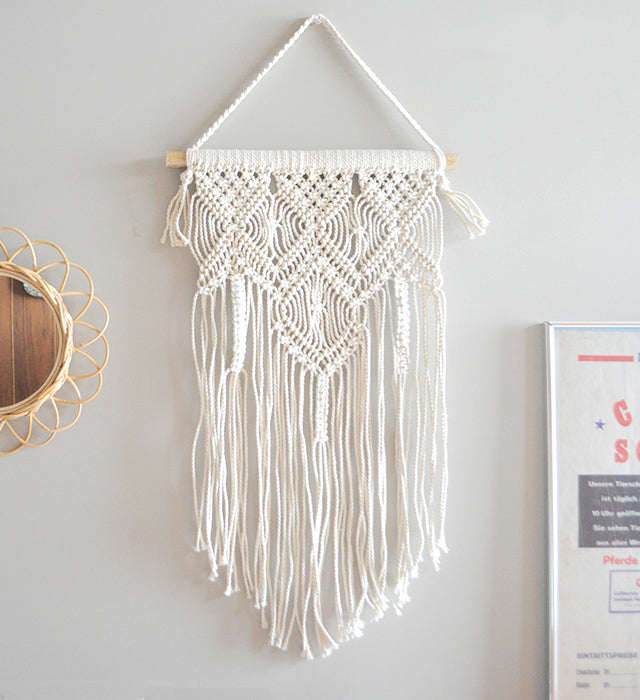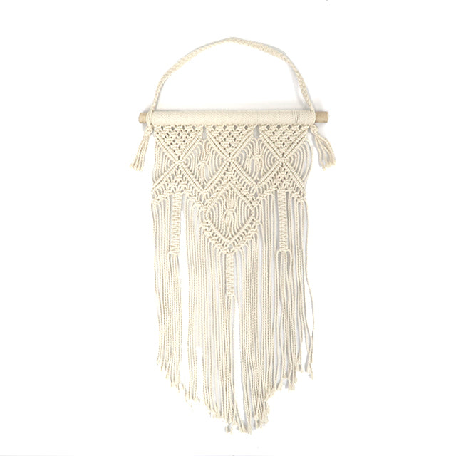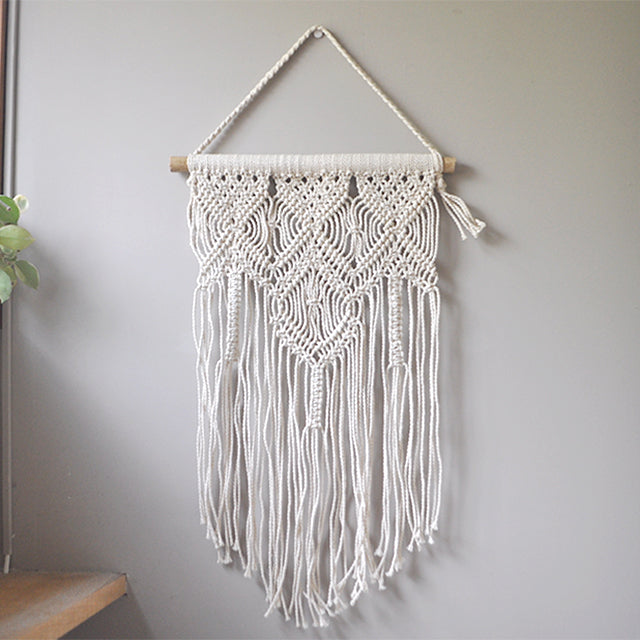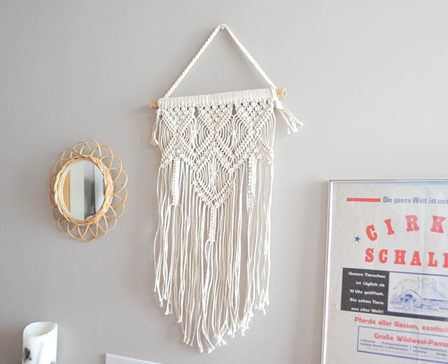 ひとつずつ丁寧に手編みされたタペストリー。 長いフリンジ部分が印象的で、とてもインパクトがあるデザインなので、インテリアのアクセントになります。 お引越しのプレゼントなどにもおすすめです。