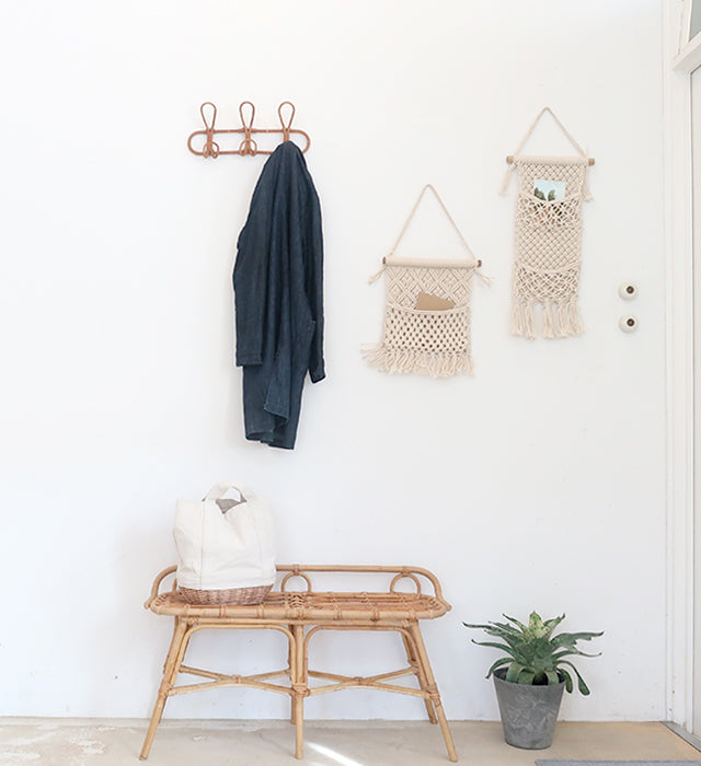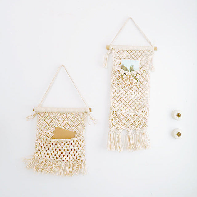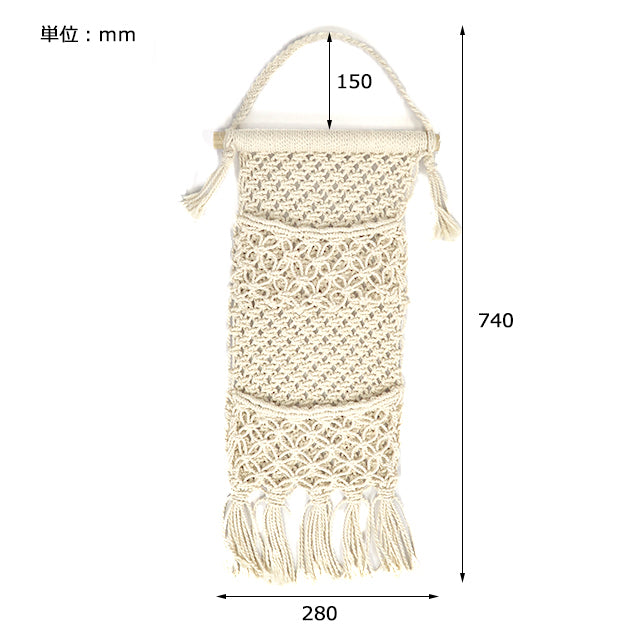 ひとつずつ丁寧に手編みされたタペストリー。 ウォールデコレーションをマクラメ編みのタペストリーでお楽しみ頂けます。 ポケット付きでお気に入りの本や郵便物を収納しながら、インテリアも楽しめます。 フリンジが印象的でポイントです。