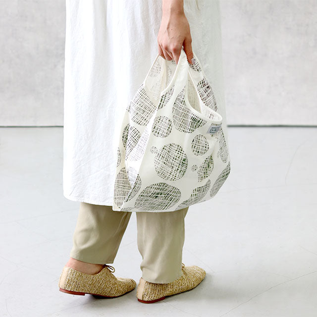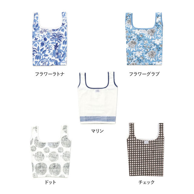インドの伝統技法ブロックプリントを使った、1点1点表情が異なる風合い豊かなマルシェバッグです。必需品がすっぽり入る丁度いいサイズ感。 近所のおでかけやお買い物のエコバッグにおすすめです。ポケッタブル用の内ポケット付きで、コンパクトに収納が可能。メインバッグに入れておいても邪魔になりません。フラワーグラブ柄はシンプルなコーデのアクセントになってくれます。花柄と水色のカラーが春らしく、持っているだけで気分も上げてくれます。ドット柄は少しグリーンがかったグレーで、北欧風なデザインがおしゃれです。どんなコーデにも合わせやすいデザインです。ブルーのラインが効いたシンプルで爽やかなデザイン。こちらもコーデを選ばない使いやすいデザインです。柄は全4パターン。どれも大人女性にぴったりなナチュラルで上品なデザインです。