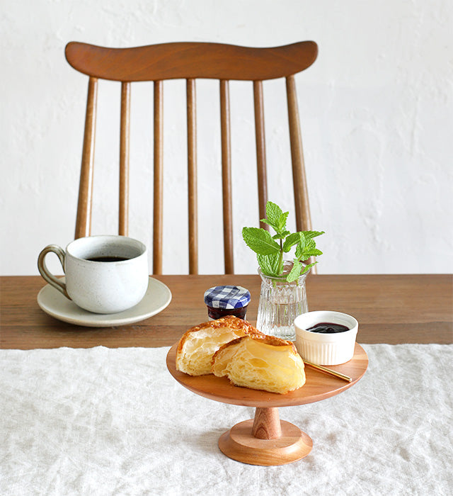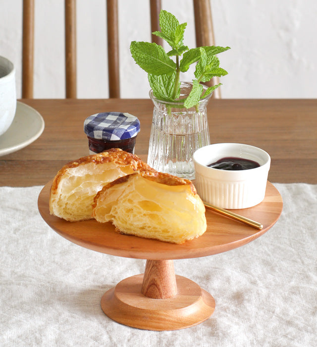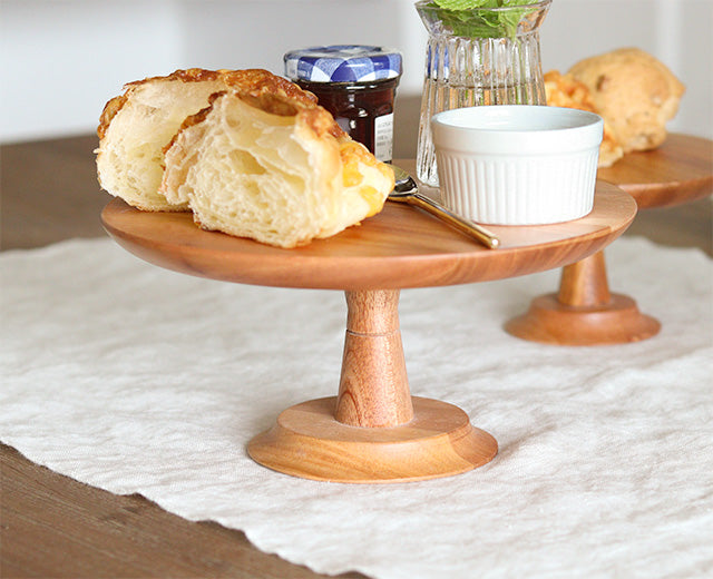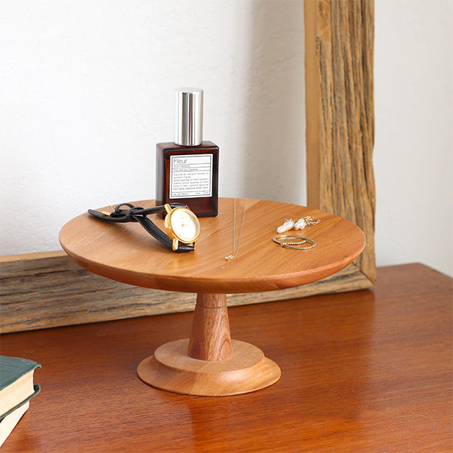 NEIN MARKEのマホガニー材を使ったケーキスタンド。 シンプルながら木の素材を活かしたデザインで、マホガニーの滑らかな手触りが特徴です。 シンプルなデザインなので、どんなテーブルコーディネートとも合わせやすく◎ Mサイズは、4~5号のホールケーキが乗るサイズ感。 ケーキ以外にもお菓子やパンなど置くのもおすすめです。 上品な佇まいで、テーブルを特別な雰囲気に変化させてくれます。 コーヒータイムや来客時など少し気分を変えたい時にもおすすめです。 ケーキスタンド以外にも、アクセサリースタンドとしてもご使用頂けます。 指輪や時計などの見せる収納にぴったりです。 その他ケーキスタンドを揃えて飾ると、さらに華やかなテーブルに仕上がります。 デコレーションを加えるだけでより一層華やかになります。 クリスマスやパーティーなどに是非ご活用ください。 (写真は4号のケーキを置いたサイズ感です。)