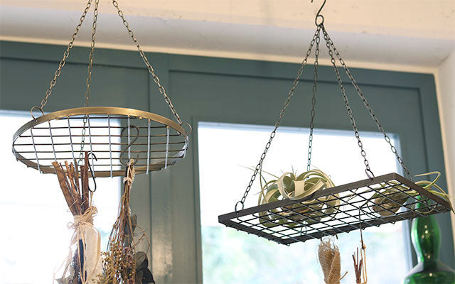 アンティークな雰囲気を感じるハンギングハンガー。天井から吊るすインテリアとしてお楽しみ頂けます。職人によるハンドメイドなので、1点1点違った風合いをお楽しみ頂けます。天井を見上げる寝室や、店舗の什器など様々なシーンで活躍してくれます。先端がS字フックになっており、簡単に取り付けが可能。ドライを飾ったり、お気に入りの洋服を吊るしたりなど、様々な使い方が可能です。タイプはラウンド、レクタングルの2パターン。レクタングルタイプはメンズライクな空間にも合わせやすいデザインです。カラーもアンティークゴールド、アンティークブラックの2パターン。どちらも落ち着いた印象で空間に溶け込んでくれますよ。