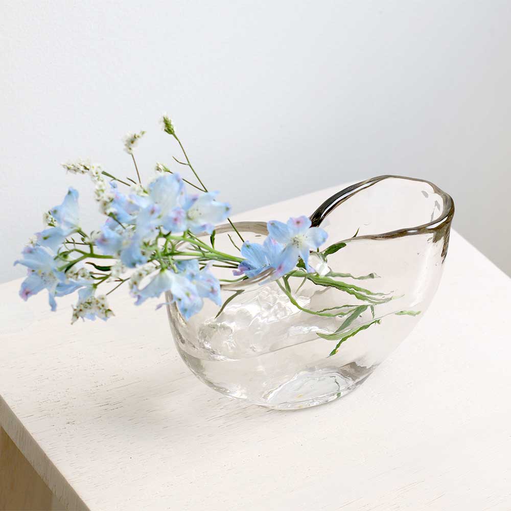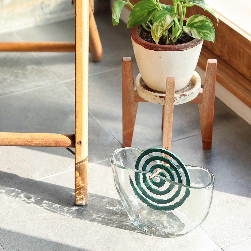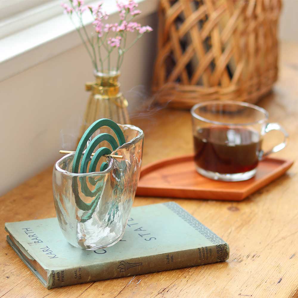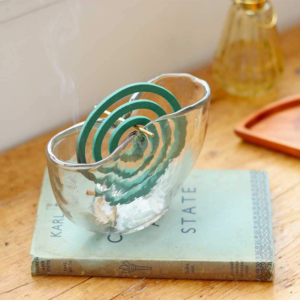 表面の凸凹が特徴的なハンドメイドの蚊取り線香ホルダー。 ハンドメイドの1点1点異なる表情が温もりを感じるアイテムです。 シンプルながら凸凹が個性的なデザイン。 ガラスが光をキラキラと反射させ空間を演出してくれます。 光がよく入る場所に置くと、落ちる影も印象的です。 ハンドメイドならではの気泡や傷なども風合いとしてお楽しみ頂けます。 ガラス素材は夏のジメジメした時期でも涼しげな気分にさせてくれますよ。 蚊取り線香を取り付ける真鍮の棒は取り外しが可能。 虫が居ない時期はフラワーベースとしてもお使い頂けます。