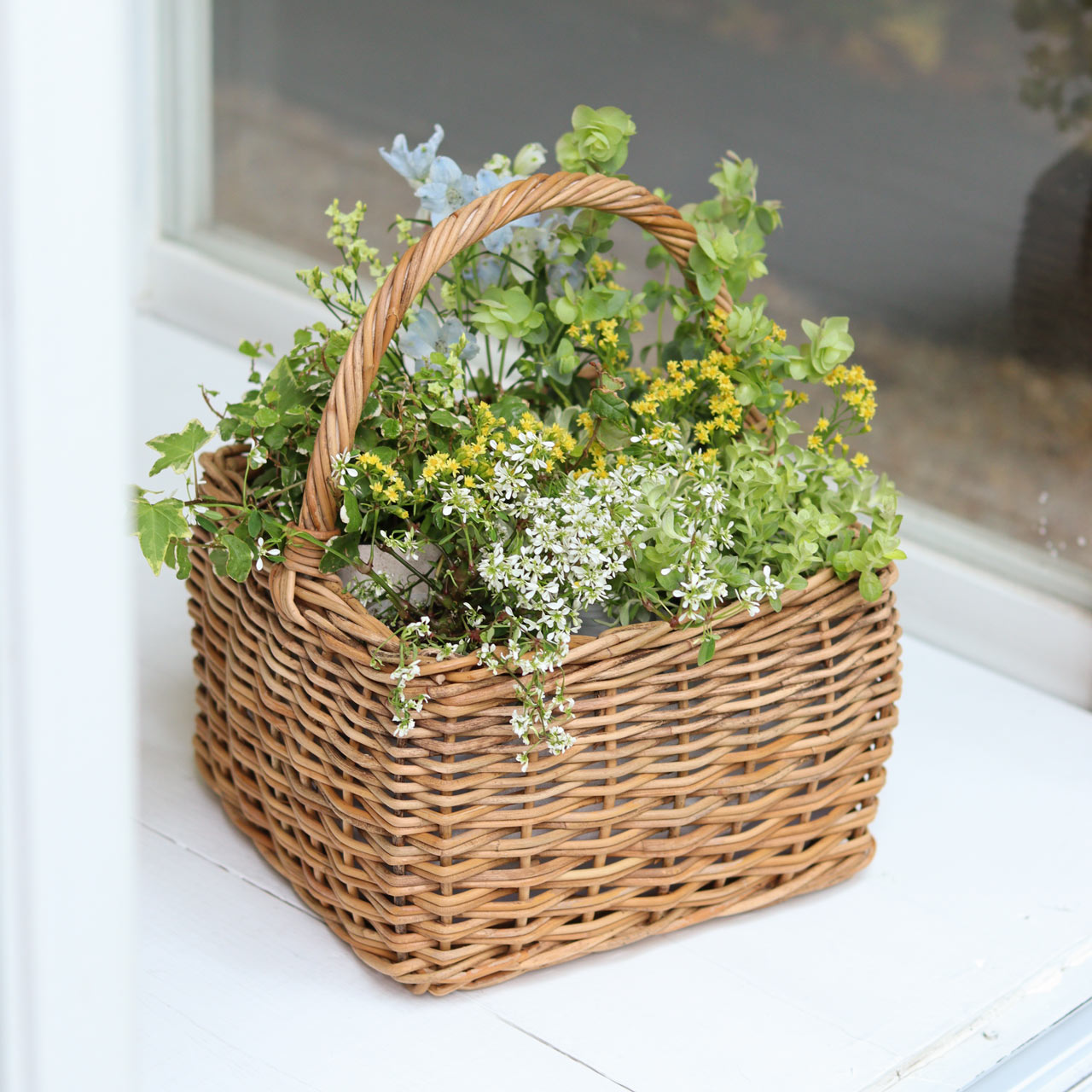 風合い豊かなラタンのスクエアバスケット。収納からドライフラワーなどを飾るインテリアバスケットとして 幅広く使いやすいベーシックなデザインです。スクエアタイプはマチも広くおさまりが良いので、キッチンやリビングの見せる収納に◎プランターとして植物の寄せ植えなどをお楽しみいただくのもおすすめです。※プランターとしてご使用の場合、内側にビニール処理は施しておりませんので、お客様の方で別途処理を行っていただく必要がございます。素材本来の色味や風合いを生かすため、皮付きのラタンを使って一つ一つ手作業で編まれています。グリーンバスケットシリーズは、ラウンドの他にスクエア、オーバルタイプがございます。形違いで揃えていただくのもおすすめです。
