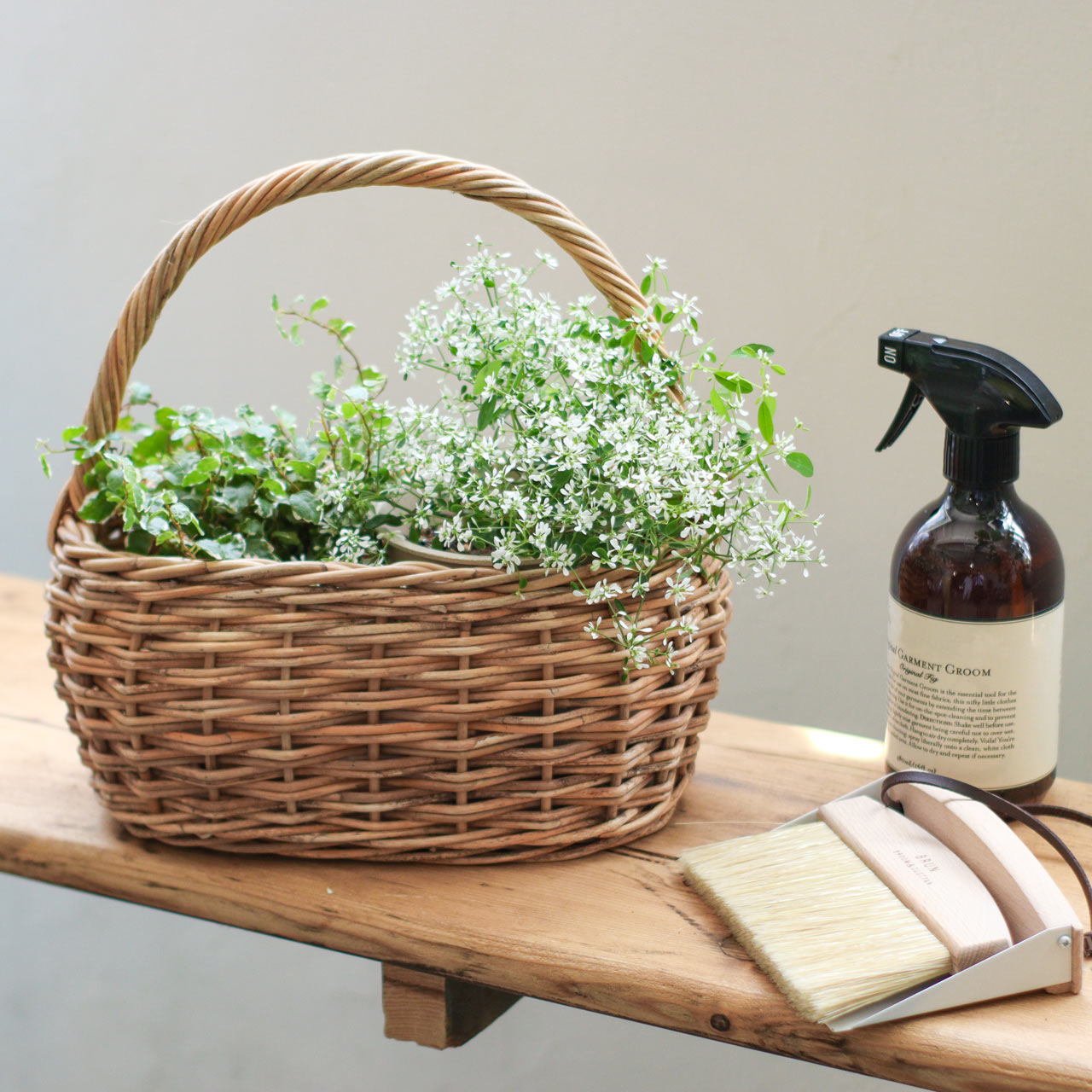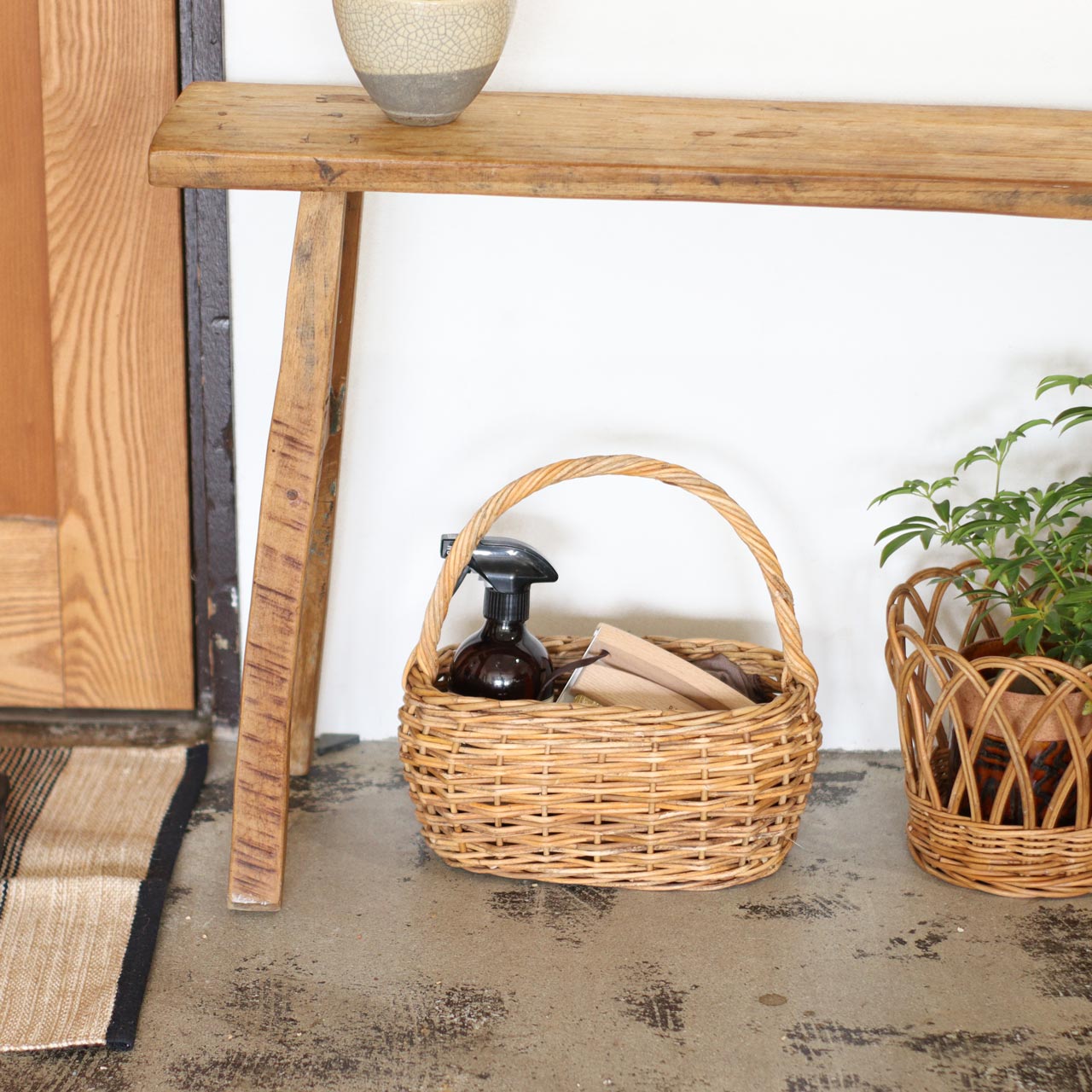 風合い豊かなラタンのオーバルバスケット。収納からドライフラワーなどを飾るインテリアバスケットとして 幅広く使いやすいベーシックなデザインです。幅約30cmのオーバルタイプは小物も収納に役立ちます。プランターとして植物の寄せ植えなどをお楽しみいただくのもおすすめです。※プランターとしてご使用の場合、内側にビニール処理は施しておりませんので、お客様の方で別途処理を行っていただく必要がございます。素材本来の色味や風合いを生かすため、皮付きのラタンを使って一つ一つ手作業で編まれています。グリーンバスケットシリーズは、ラウンドの他にスクエア、オーバルタイプがございます。形違いで揃えていただくのもおすすめです。丈夫なラタン素材は経年変化を楽しみながら長くご愛用頂けます。