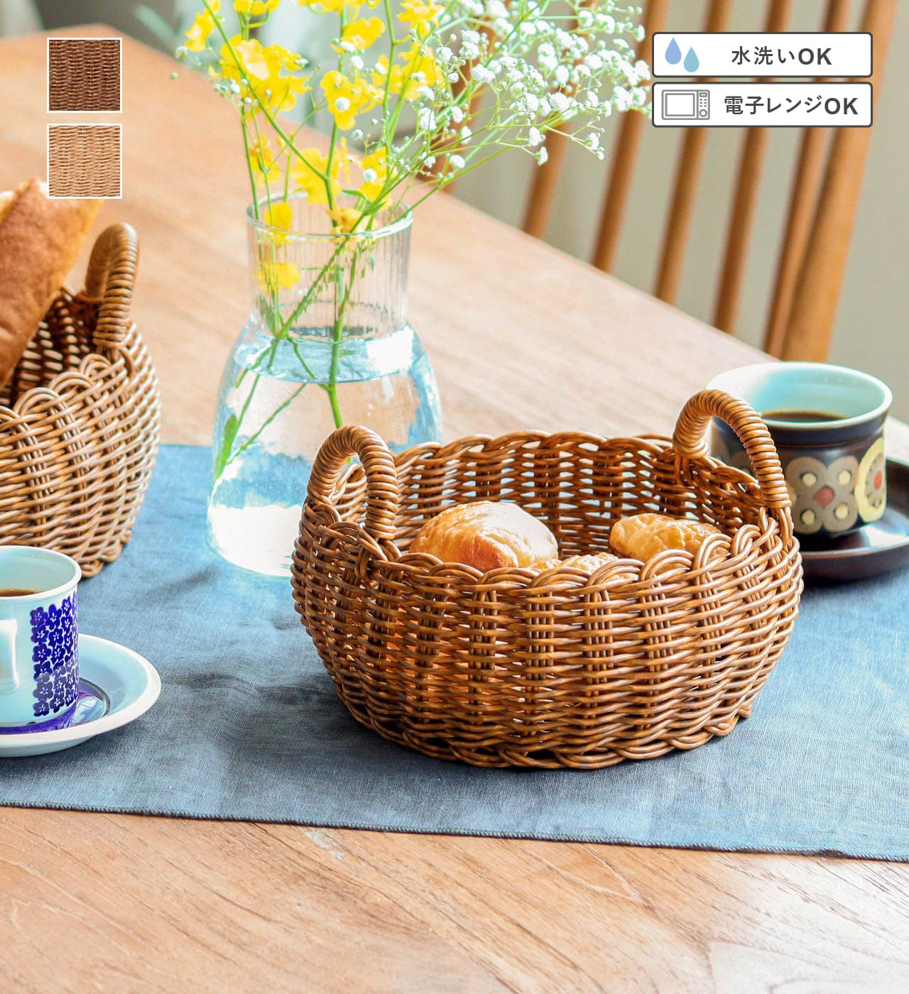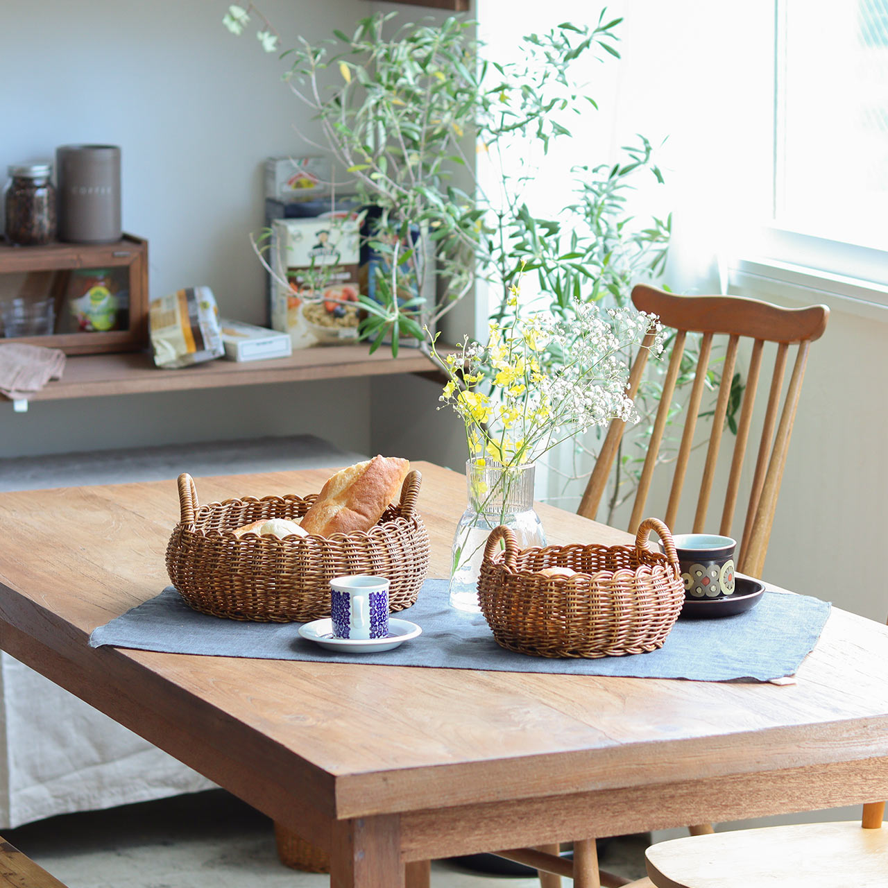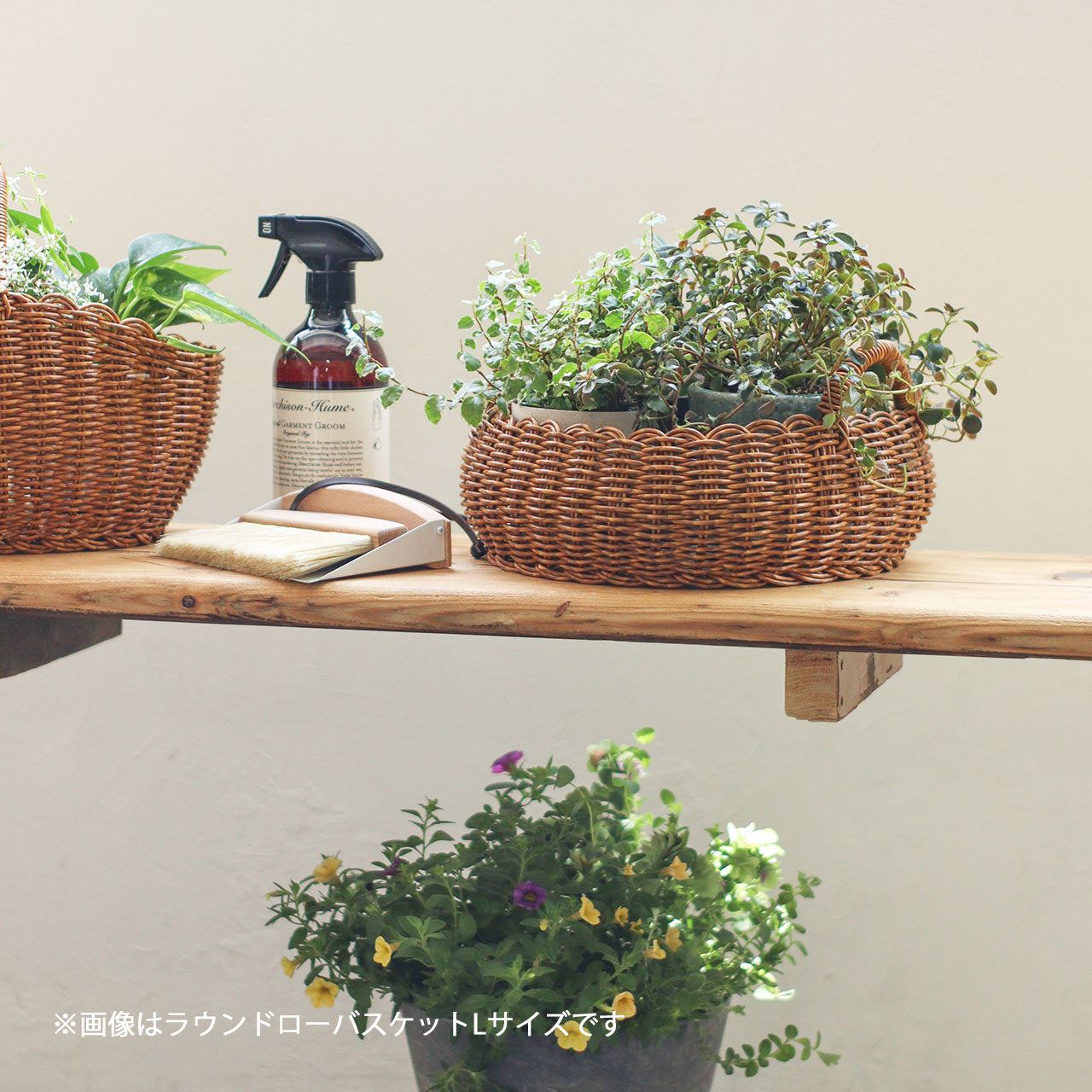 水洗いができる、見た目と機能性にこだわった手編みのバスケット。汚れても水洗いが出来るので、キッチンやガーデン用品など汚れが気になる場所でもお使いいただけます。見た目はまるで天然素材のバスケットのよう。ナチュラルな雰囲気のお部屋にぴったりのデザインです。パンやお菓子、フルーツバスケットとしても活躍します。サイズはSとLサイズの2サイズ。並べて飾ると統一感が出てさらに◎