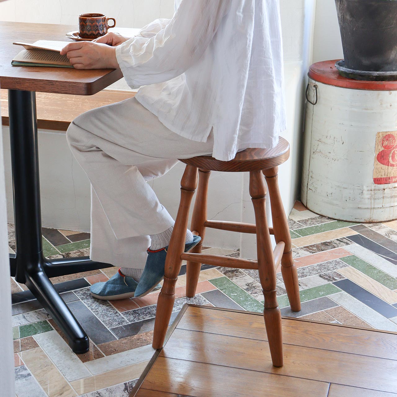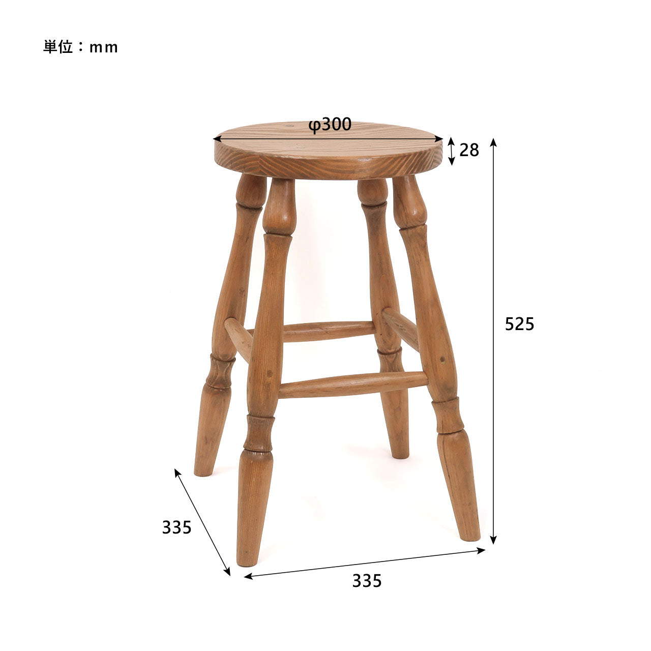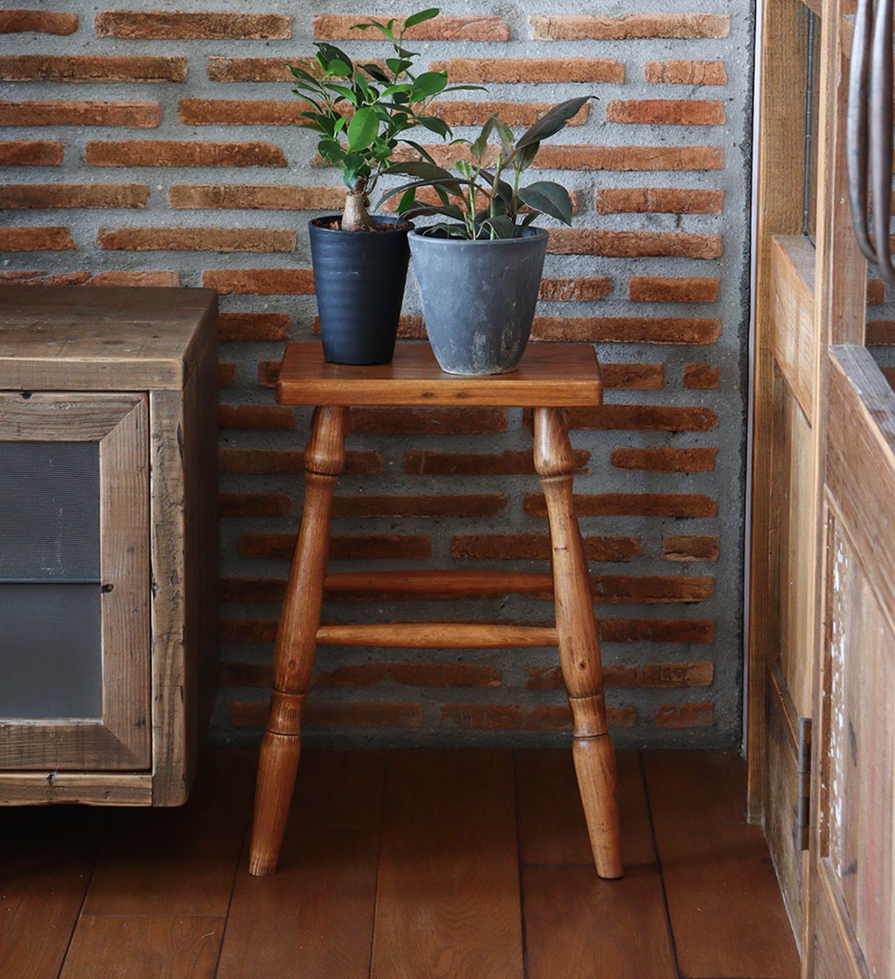 アンティークのような風合いにこだわったパイン材のスツールです。同じ高さの「ラウンドスツール」「レクトスツール」の2タイプ。キッチンで少し腰かけたい時や来客時の椅子としてはもちろん、ソファサイドに置いてサイドテーブルのような使い方もおすすめです。(モデル身長:155cm)アンティークのような雰囲気に仕上げたスツールは、花台やバスケットなどインテリアのディスプレイとしてもお使いいただけます。木材ならではの曲線を活かす脚のデザインや、座りやすいように座面に少し凹みをつける加工など細部にもこだわりました。【色味について】天然素材を使用しているため、色や節の個体差があります。製品の特徴として予めご了承ください。また、できるだけ実物の色に近くなるように努めていますが、お使いの環境(モニター、ブラウザ等)により、色の 見え方が実物と若干異なる場合がございます。