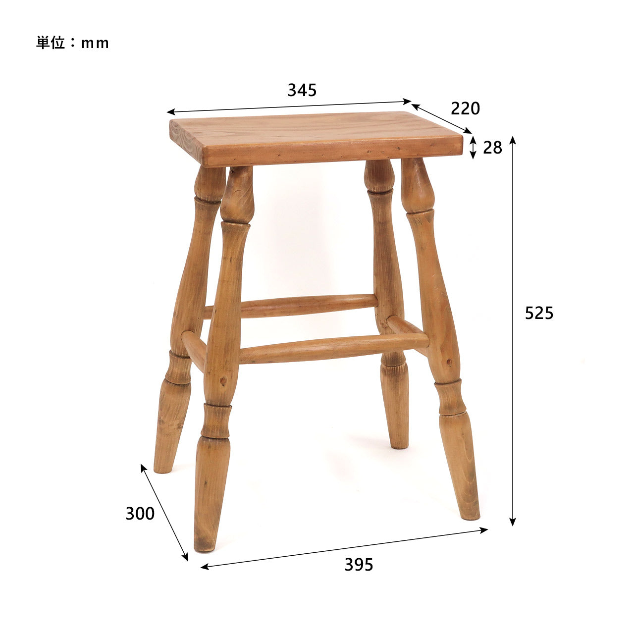 アンティークのような風合いにこだわったパイン材のスツールです。同じ高さの「ラウンドスツール」「レクトスツール」の2タイプ。キッチンで少し腰かけたい時や来客時の椅子としてはもちろん、ソファサイドに置いてサイドテーブルのような使い方もおすすめです。(モデル身長:155cm)アンティークのような雰囲気に仕上げたスツールは、花台やバスケットなどインテリアのディスプレイとしてもお使いいただけます。木材ならではの曲線を活かす脚のデザインや、座りやすいように座面に少し凹みをつける加工など細部にもこだわりました。【色味について】天然素材を使用しているため、色や節の個体差があります。製品の特徴として予めご了承ください。また、できるだけ実物の色に近くなるように努めていますが、お使いの環境(モニター、ブラウザ等)により、色の 見え方が実物と若干異なる場合がございます。