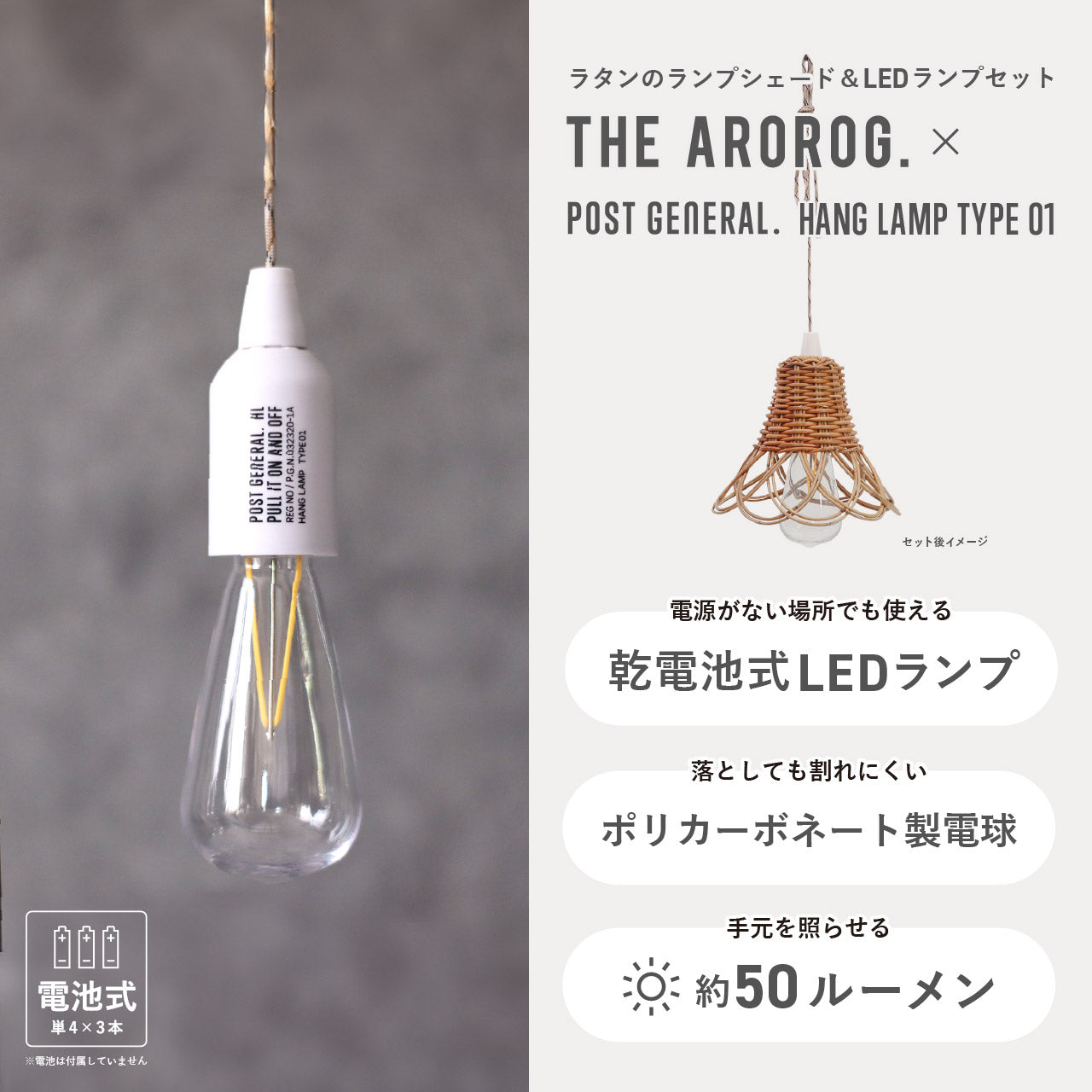 【仕様変更のお知らせ】付属の「ハングランプ タイプ1」のカラーを変更しました。変更前:オリーブカーキ変更後:ホワイト アラログのランプシェード付きLEDランプ 電池式LEDランプとアラログで編まれたランプシェードをセットにしました。パラコードで吊るせるので、好きな場所に設置してお使いいただけます。灯りを付けるときは片手でコードを持ち、もう一方の手で本体を押さえた状態でON/OFFを行ってください。落としても割れにくいポリカーボネート製電球なので風の強い屋外でも安心・安全。ランプシェードは「ハングランプ タイプ1」の細長い電球が映えるようにデザインされています。アウトドアや室内のインテリア、防災ランプとして、様々なシーンでお楽しみいただけるアイテムです。 【ランプ性能】電源:単4電池×3本 ※電池は付属しておりませんLUMEN : 約 50ルーメン(最大)連続点灯時間:約 24h ※連続点灯時間に応じて徐々に暗くなります。生活防水レベル:IPX4