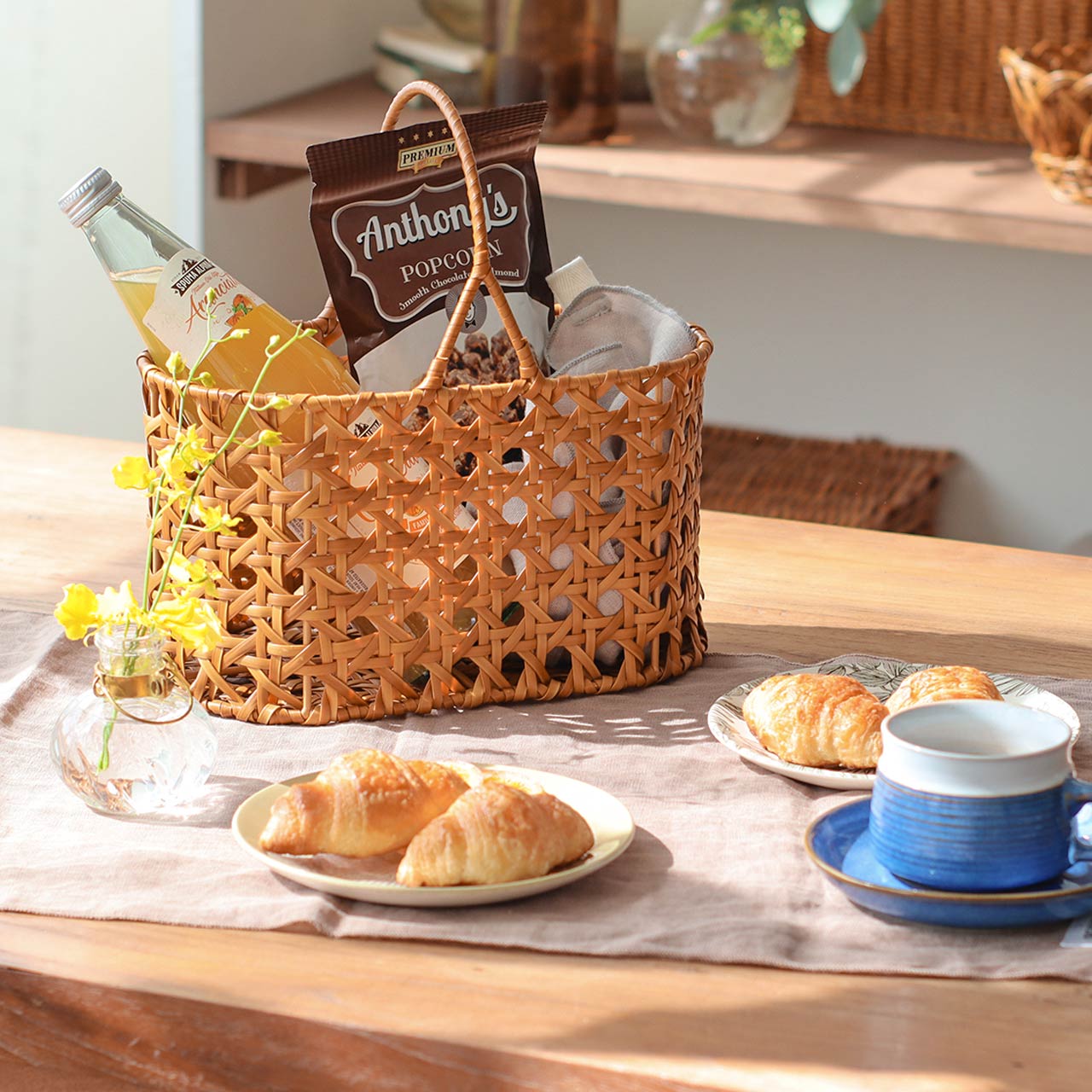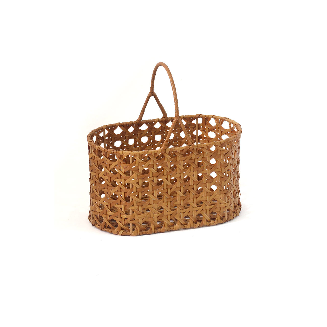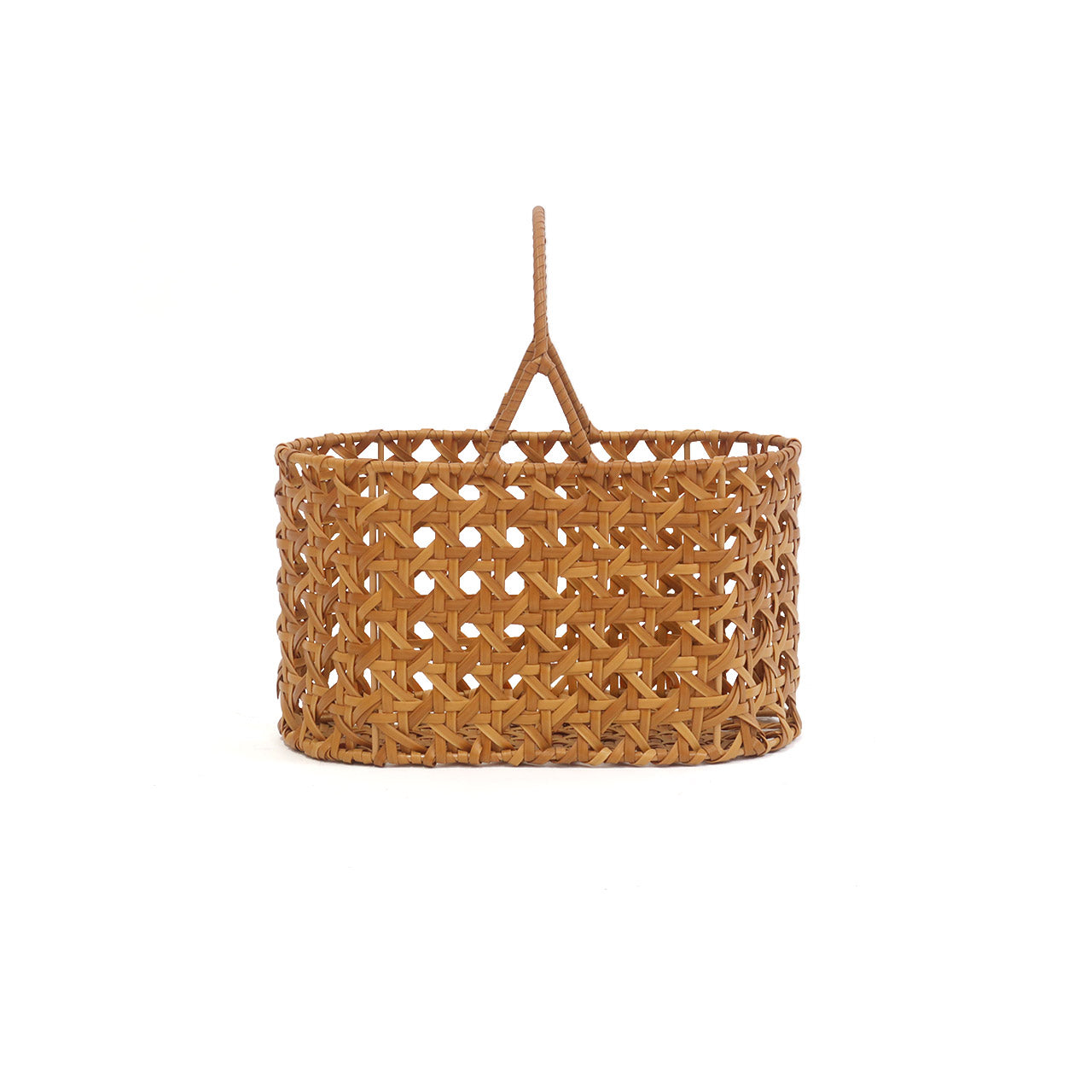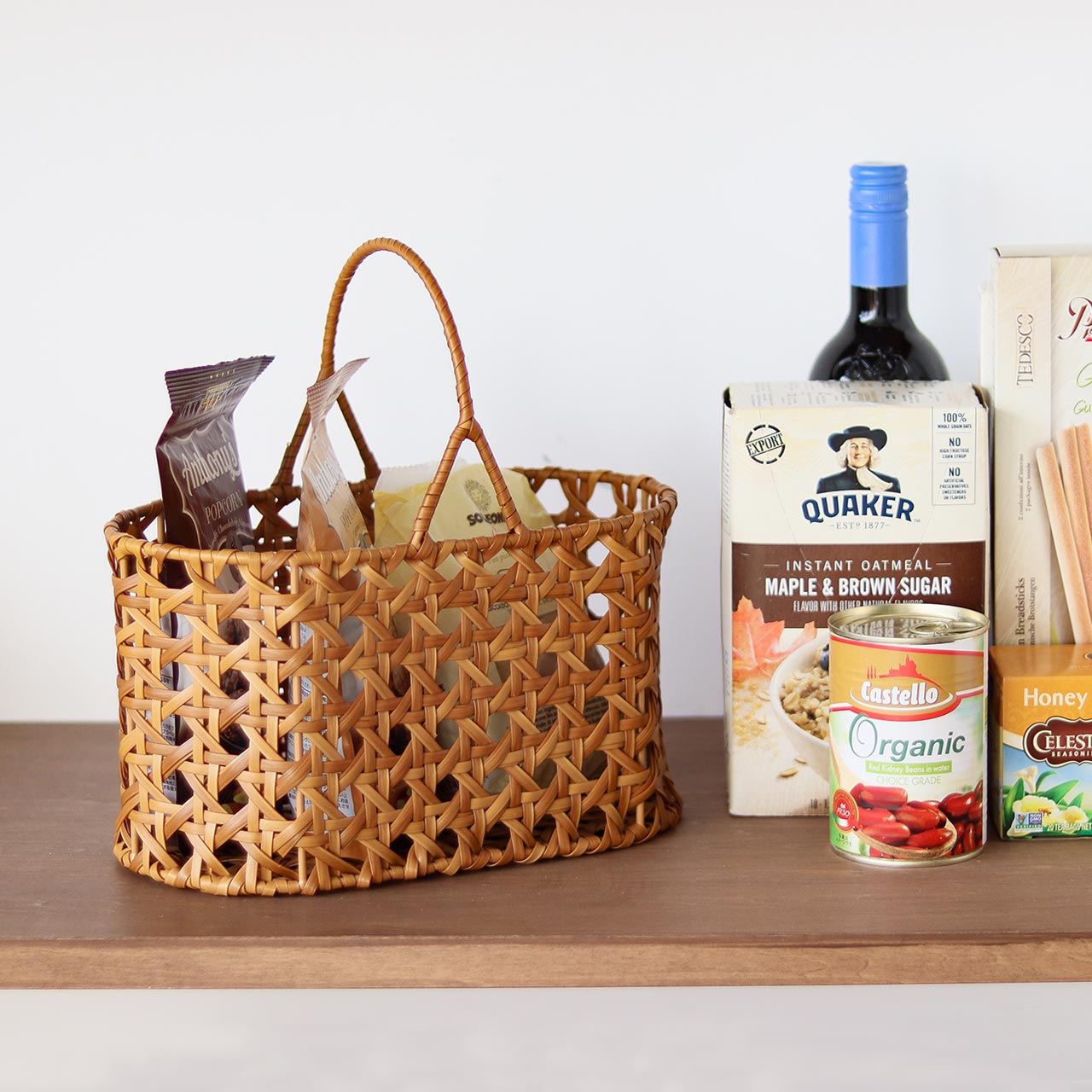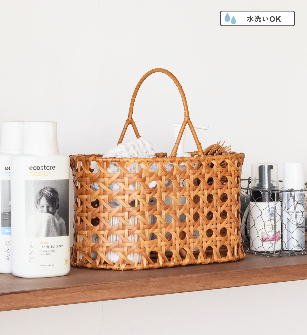 懐かしい雰囲気の八つ目編みバスケット。 ポリプロピレン、ポリエチレンチューブを使って手作業で編まれたバスケットです。 水に強い素材なので、汚れた時は水洗いも可能。ナチュラルな雰囲気で見える場所に置いていても 気になりません。(※濡れたままの状態で長期間放置すると錆の原因となりますのでご注意ください。色々な用途で使えるデザイン。ティーセットを入れるとテーブルが華やかに。 ワンハンドルで持ち運びやすいので、コスメ用品の収納にも◎出しっぱなしにしていても気にならないナチュラルな雰囲気。その他のサイズと合わせてのご使用も統一感が出ておすすめです。