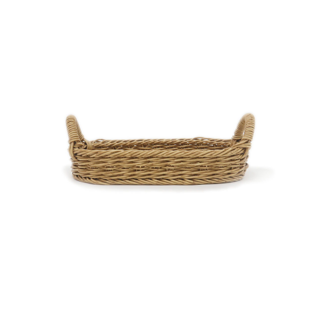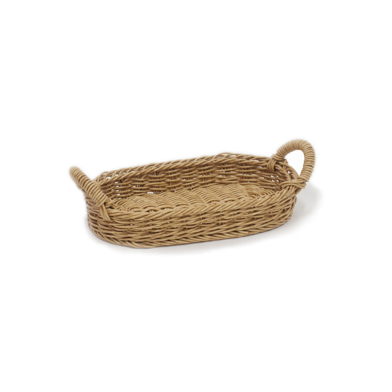 天然素材で編まれたような自然な温かみのあるトレイ。 Sサイズは、カップとお菓子を一緒に運ぶのにちょうどいい小さなトレイです。Lサイズは、朝食やティータイムにぴったりのナチュラルな楕円形のトレイ。 水に強い素材で編まれているので、お菓子や飲み物の汚れもさっと洗い流せます。 移動に便利な持ち手つき。 メガネやアクセサリー、キートレイにも丁度いいサイズ感。 ベッドサイドや玄関脇に置いて、日常使いの物の収納におすすめです。 よりナチュラルな雰囲気にこだわったナイールカラー。 同シリーズで揃えてご使用いただくと統一感が出ておすすめです。