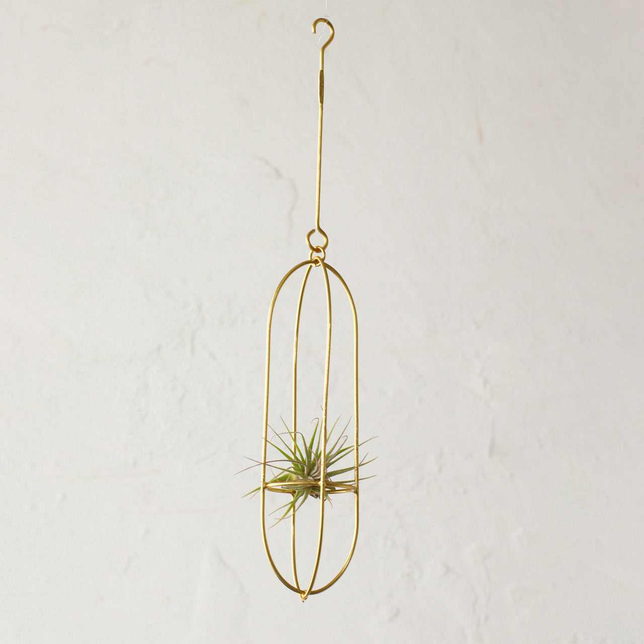 エアプランツがすっぽり収まるようにデザインされたラウンドオーナメント。引き延ばしたような形が特徴のロングタイプ。円形のパーツを組み合わせた2連タイプ。エアプランツやドライフラワーの置き場所にぴったりです。そのままオーナメントとして飾ったり、お気に入りのアクセサリーを飾っても◎先端はフックになっているので、カーテンレールやS字フックと組み合わせて気軽に飾っていただけます。天井から吊るして揺れる様子を楽しんだり、空間をおしゃれに彩ることができるアイテムです。