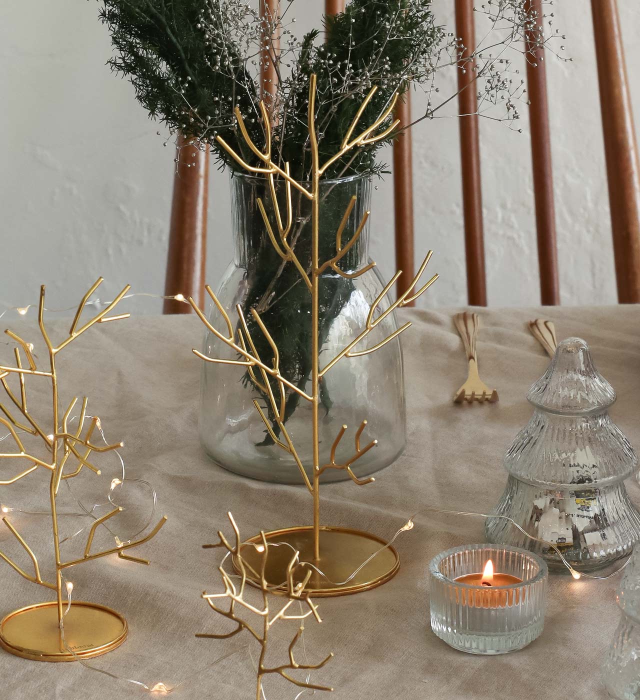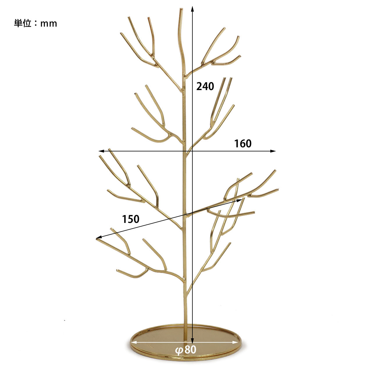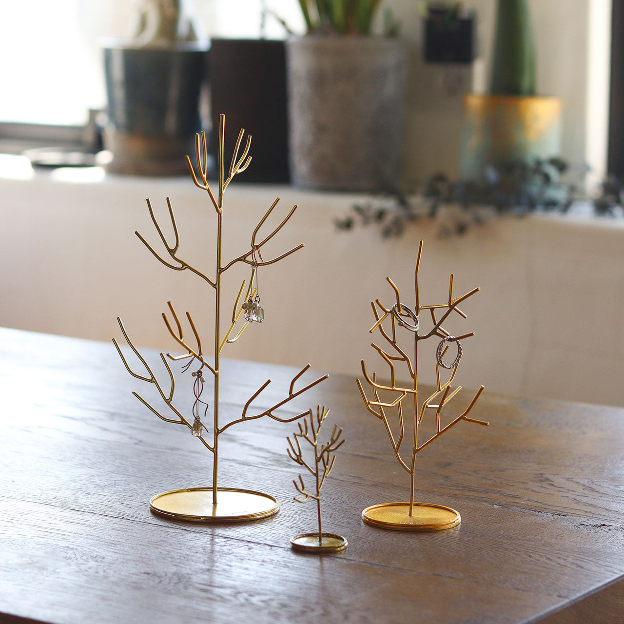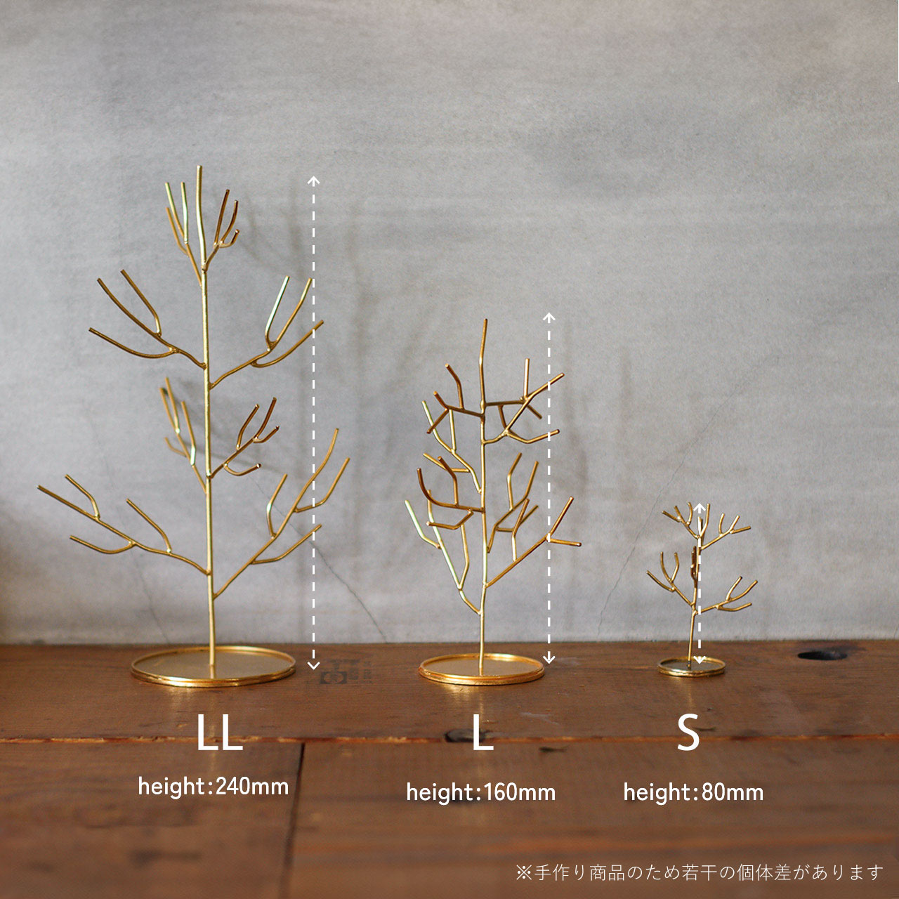 アクセサリーをオーナメントのようにディスプレイ出来る、ツリー型のスタンドに大きなLLサイズが加わりました。アクセサリースタンドは全部で3サイズ。高さ約24cmのLLサイズは 短いネックレスやチョーカー、ブレスレットなども飾りやすいサイズ感です。一つのツリーにいろんな種類のアクセサリーを飾ったり、アクセサリーの種類毎にツリーを分ける使い方もおすすめ。スタンド以外にオブジェとしてもお楽しみいただけます。華奢なツリーのシルエットにゴールドカラーが映えるアクセサリースタンドです。