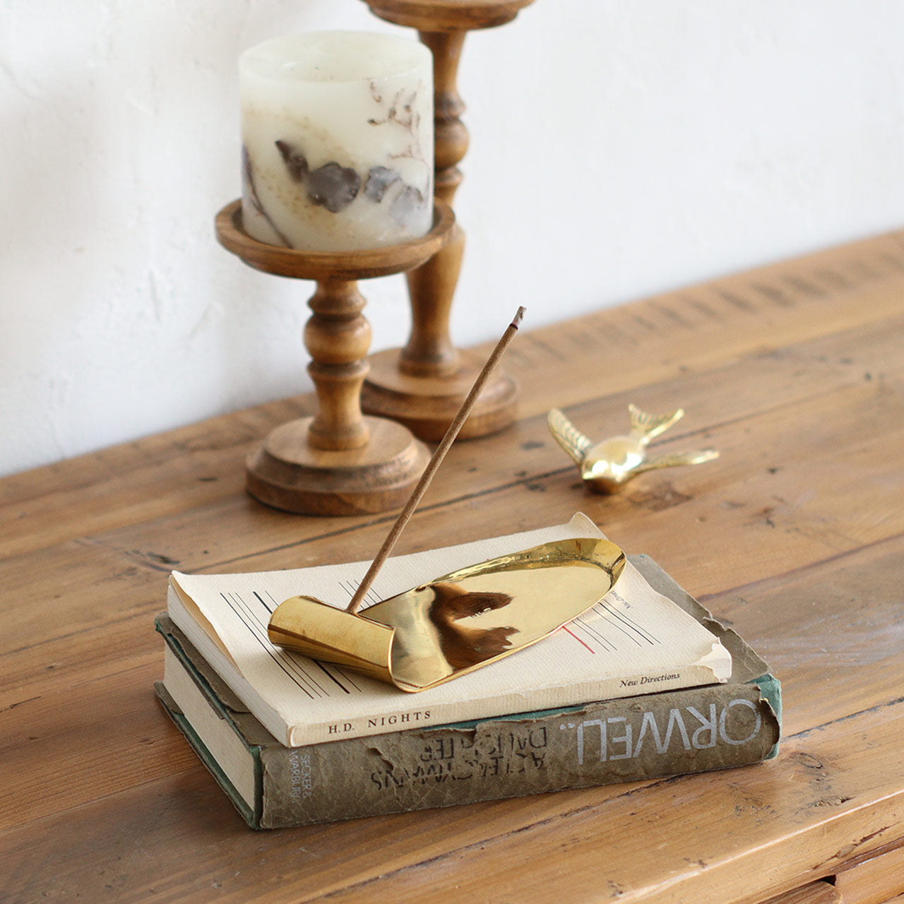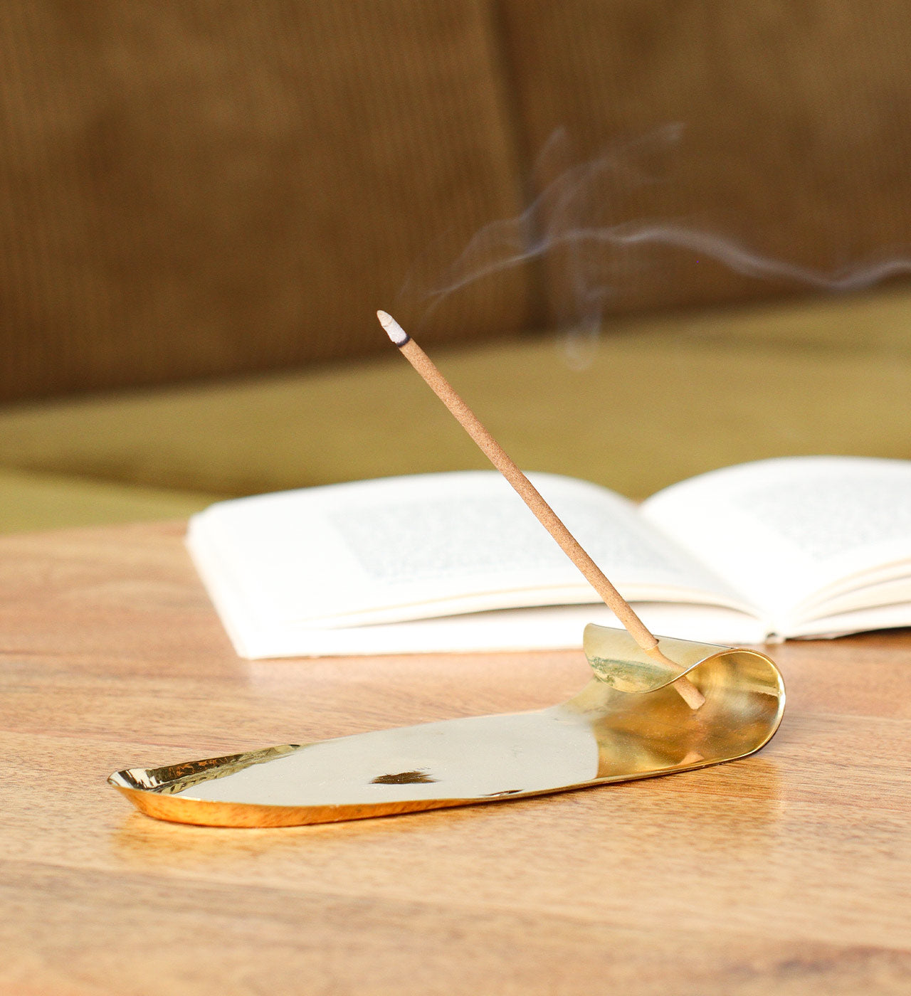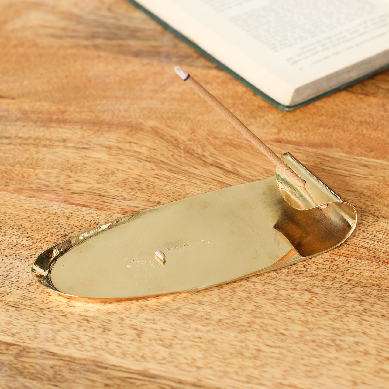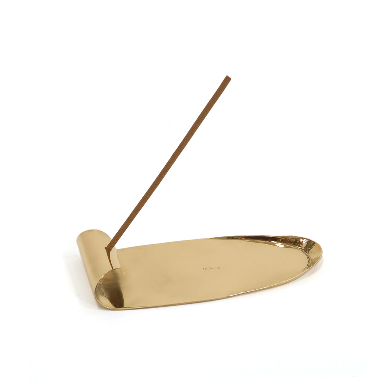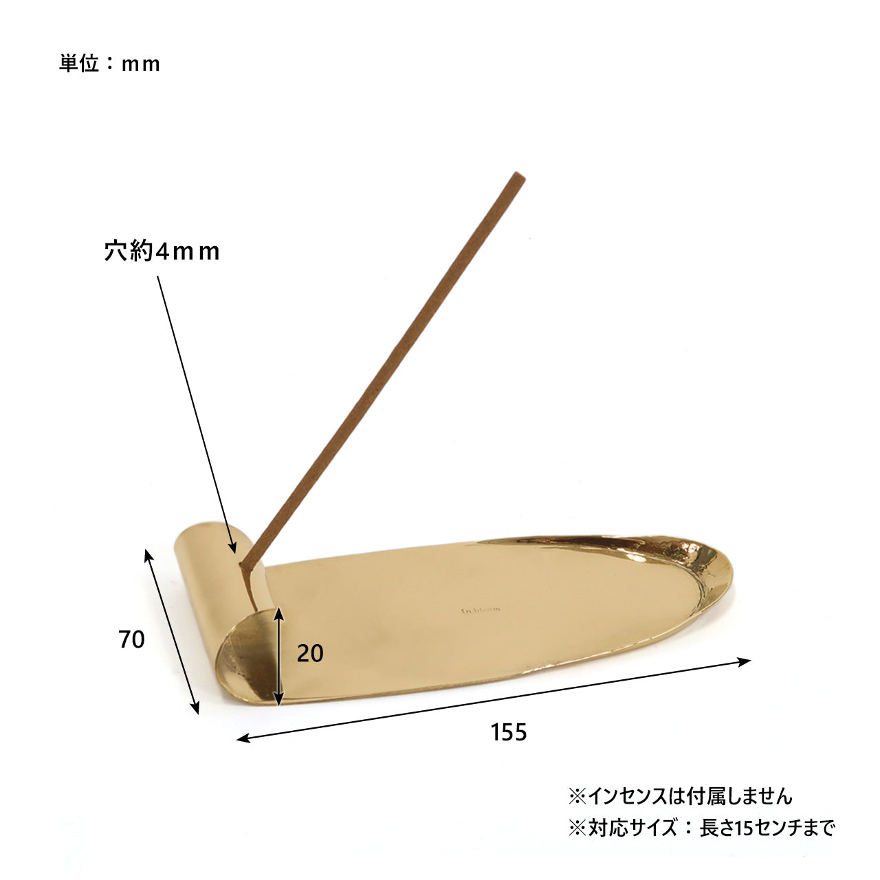 長さ15cmまでのスティックタイプのお香に使えるインセンススタンド。端がめくれ上がったようなシンプルでユニークなデザイン。持ち上げやすく安定感のある形なので灰を捨てるときも安心です。トレイの中心には「in bloom」の刻印が入っています。※インセンスは付属しません真鍮は無塗装仕上げのため、時間の経過と共にゴールドから味わい深い色味へ変化していきます。素材の特性として経年変化も合わせてお楽しみください。