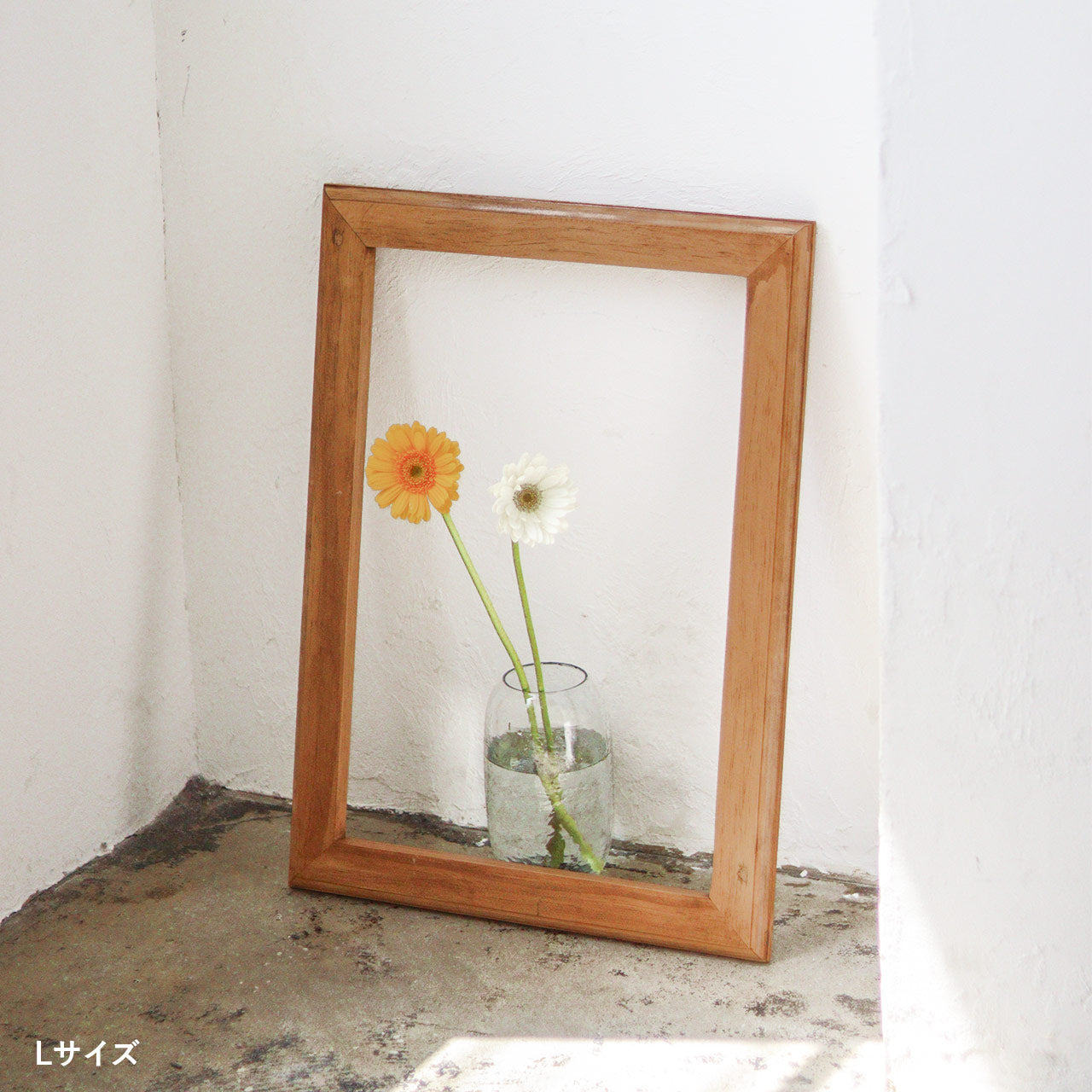 壁に掛けたり、床に置いたりなど使い方を自由に楽しめるパイン材フレーム。フレームのみなので、壁掛けでフレームの中にドライフラワーを飾ってみたり、床に置いて中に作品を飾るなど、自由度の高いディスプレイをお楽しみいただけます。素材には軽いパイン材を使用しており、アンティークのような重厚感を出すために一つ一つ手作業で塗装を行っています。(※天然木を使用しているため、木目や節の出方、色合いに個体差があります。予めご了承ください。)パイン材の自然な木目が美しく、どんなインテリアにも調和し溶け込んでくれます。背面の4箇所に三角カンが付いているので、横向き縦向きのどちらでも壁に掛けてお使いいただけます。(商品画像はテグスで吊り下げて撮影しています。)サイズはS、M、Lの3種類。同じサイズを並べたり、サイズ違いを組み合わせて配置するのも統一感が出ておすすめです。