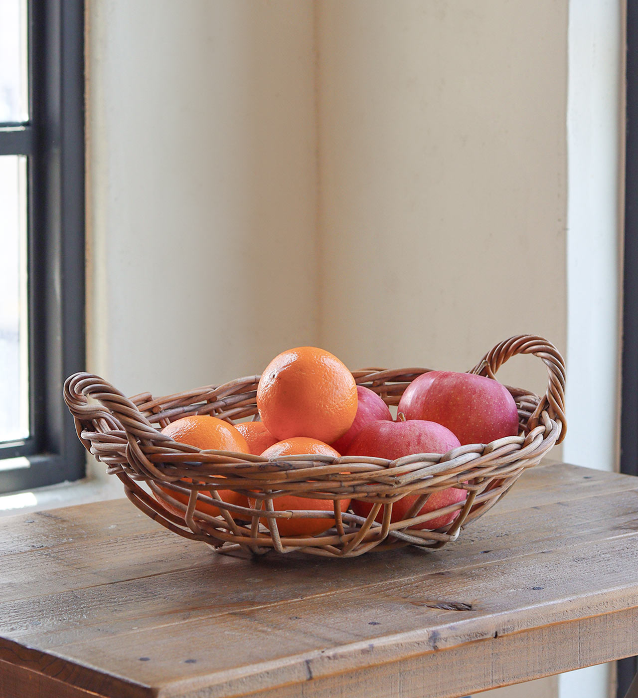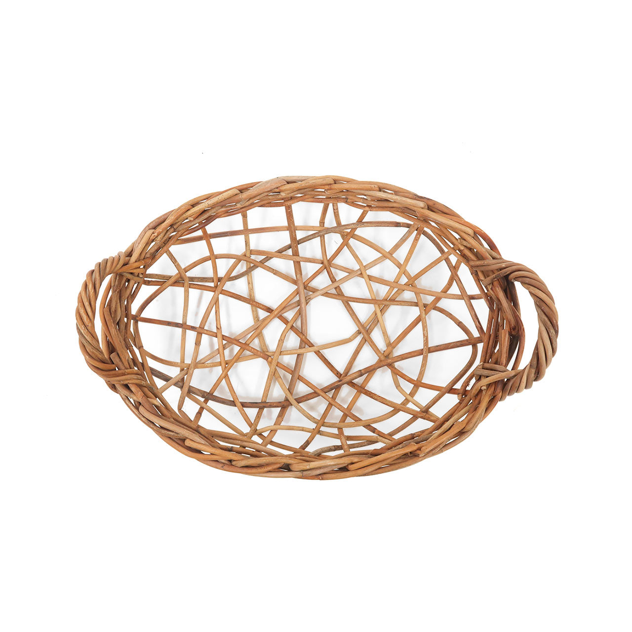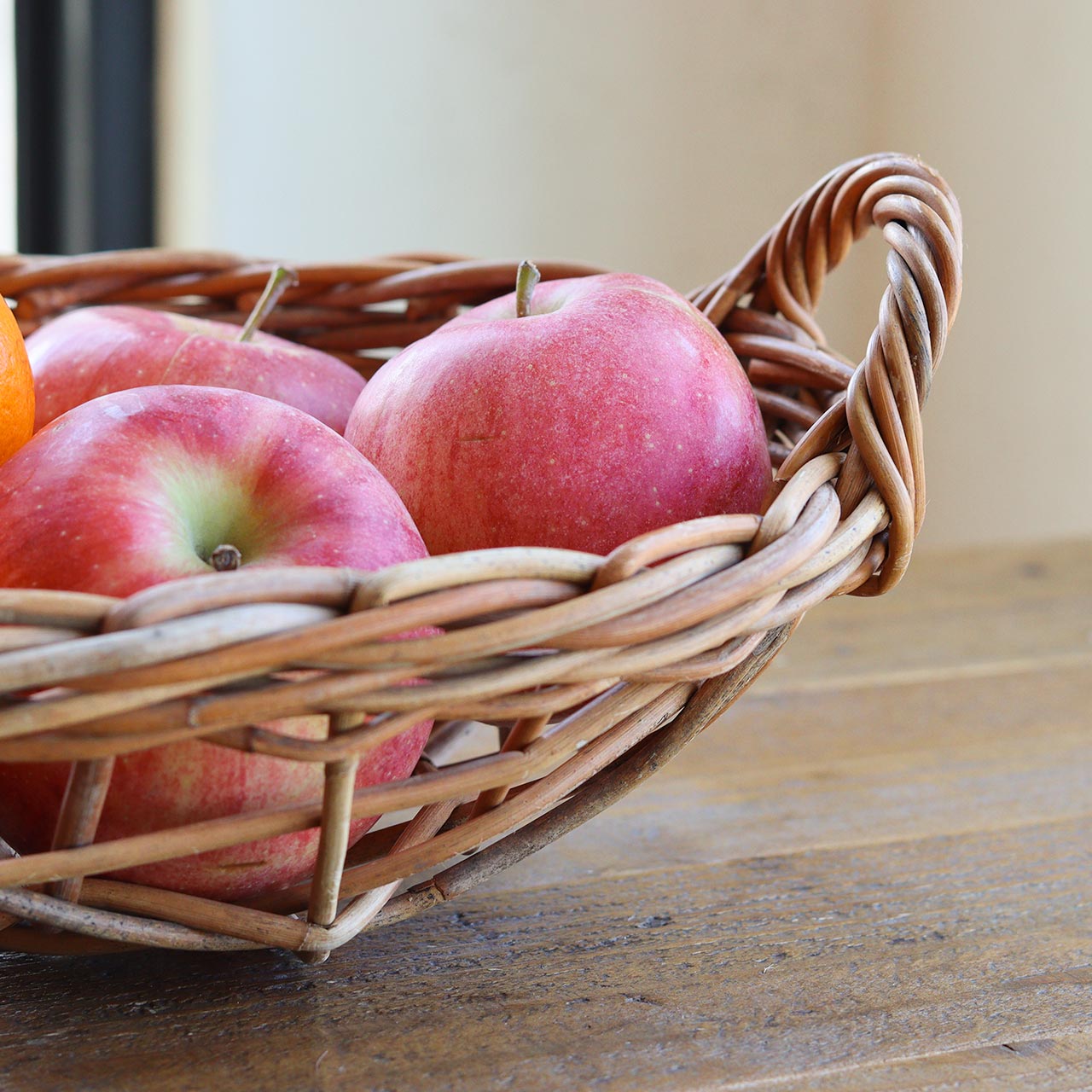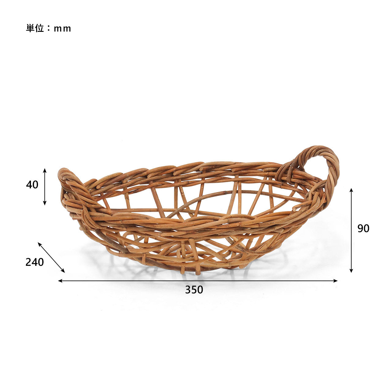 ランダムに編まれた編み目が特徴のバスケット。「ネスト」とは英語で鳥・動物などの巣という意味。名前の通り、皮付きのラタンを使ってランダムに編まれた様子が 巣のような浅型のバスケットです。持ち手がアクセントになっており、果物や野菜かごにぴったり。編み目の大きなデザインですが、布やペーパーを敷けば細かな物も収納できます。素朴な風合いがお好きな方におすすめのバスケットです。