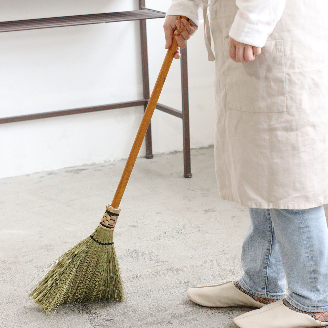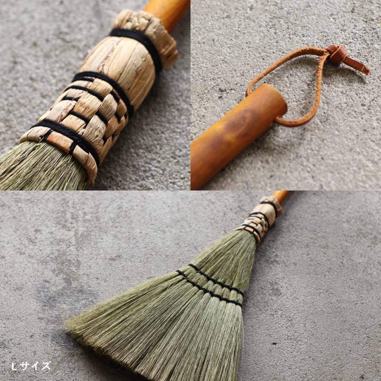 天然素材の「タイガーグラス」というい草を使って編まれたほうきです。やわらかな掃き心地が特徴で、持ち手が長いM/Lサイズは、お部屋全体や玄関、お庭のお掃除に便利です。吊り下げて収納できる革紐付きで、お掃除の後もそのまま出して飾っておきたくなる昔ながらの素朴な魅力溢れるほうきです。机の上やサッシの隙間など細かい場所の掃除に便利なハンディサイズのSS/Sサイズもございます。