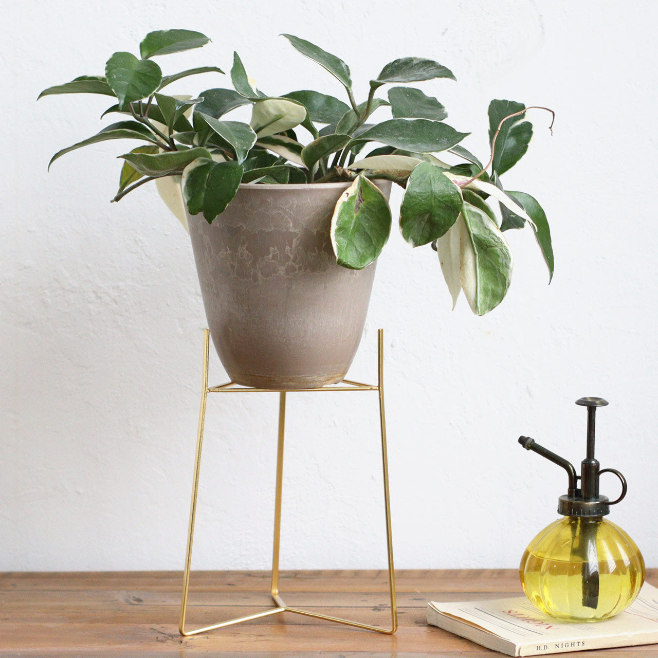 ゴールドのラインが印象的なポットスタンド。幅広いインテリアに馴染むシンプルなデザイン。ポットを直置きするよりも高級感のある印象に。サイズはS、M、Lの3サイズ。サイズ違いを並べて飾るのもおすすめです。