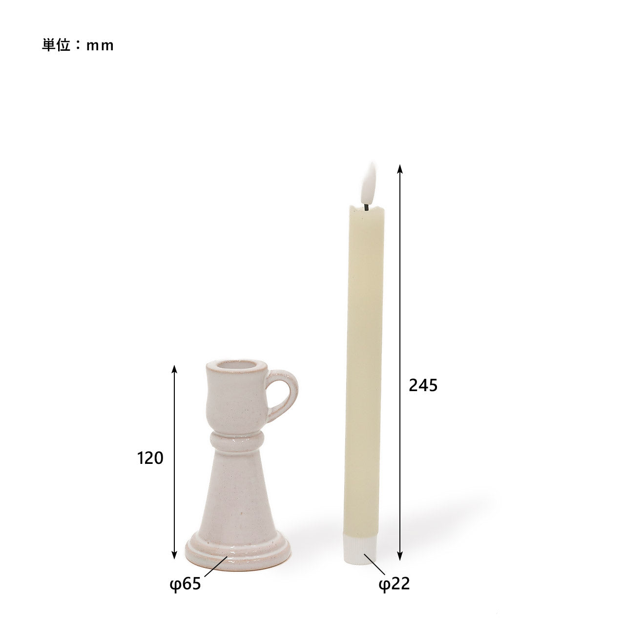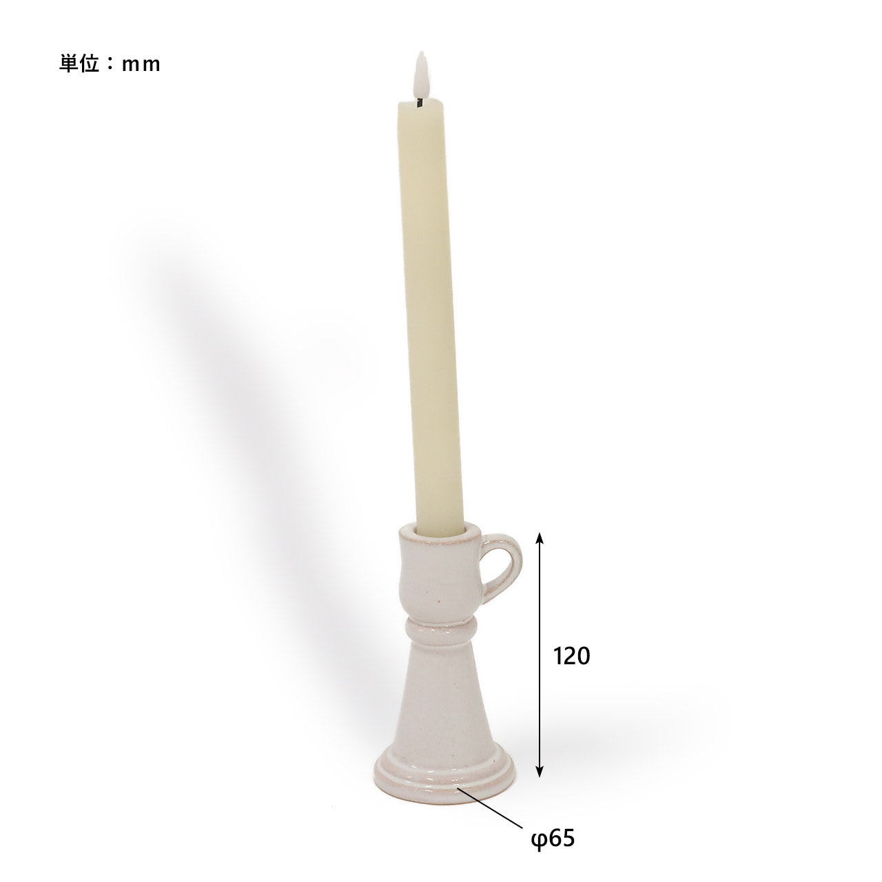 クラシカルな雰囲気のある 磁器スタンドとLEDキャンドルライトのセット。小さなマグカップのような形が 可愛らしいデザイン。磁器ならではの光沢感と繊細さが、インテリアに洗練された印象を加えてくれます。釉薬のかかり具合によって色合いやムラなど1点1点異なりますが、味わいとしてお楽しみください。LEDキャンドルライトは 本物の炎のように心地よく揺らめき、リラックスした空間を演出してくれます。本体の表面は蝋でコーディングされており、表面の凹凸や上面の自然に溶けたようなフォルムがまるで本物のキャンドルのような仕上がりです。単4電池2本で、約100時間の連続点灯が可能で、ON・OFFの切り替えは底面のスイッチを手動で押すだけの簡単な仕様。火を使わないLEDライトなので、小さなお子様やペットのいる空間でも 安心してお使いいただけます。クリスマスシーズンの雰囲気作りや、夜のリラックスタイムなど 様々なシーンでお楽しみください。
