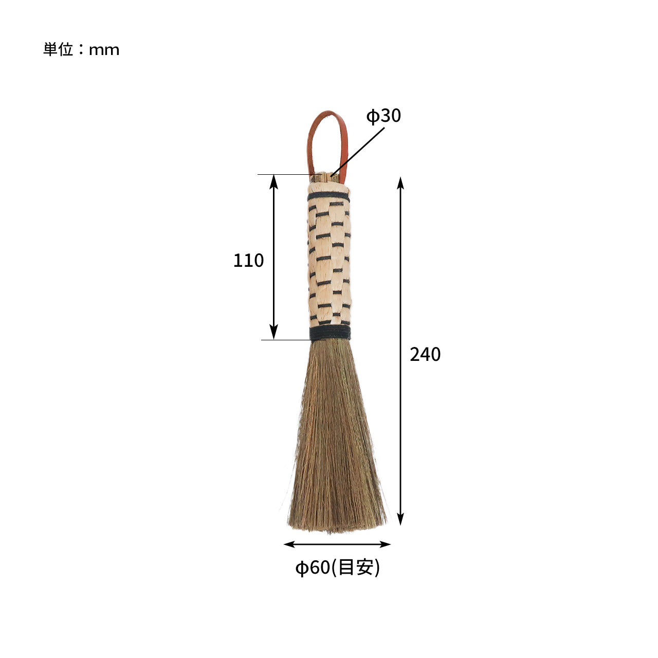 天然素材の「タイガーグラス」というい草を使って編まれた丸ほうき。やわらかな掃き心地が特徴で、フローリングや畳などの床材を傷つけにくく室内・屋外問わずお使いいただけます。持ち手の短いコンパクトなSサイズは、机の上や、狭い場所、隙間など細かいところのお掃除に。持ち手の長いLサイズは、立ったまま楽にお掃除ができるため、お部屋全体や玄関、お庭などの広いスペースのお掃除に便利です。吊り下げて収納できる革紐付きで、お掃除の後もそのまま出して飾っておきたくなる昔ながらの素朴な魅力溢れるほうきです。