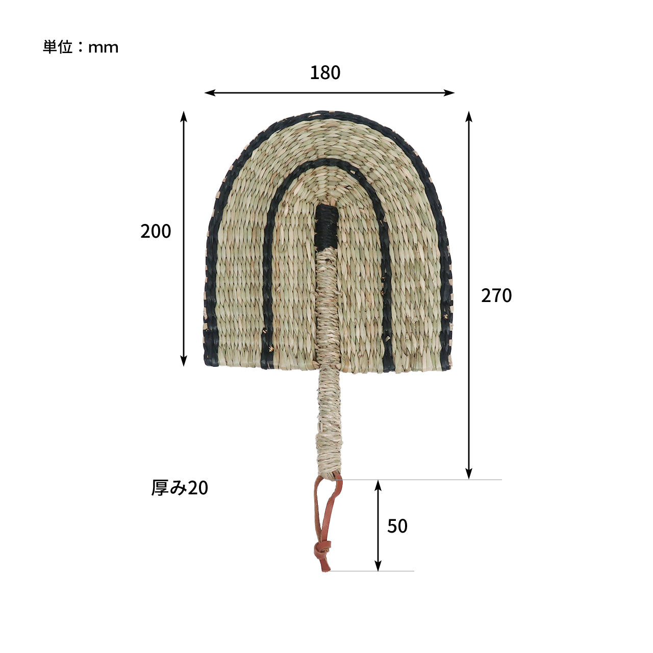 天然素材の「シーグラス」で編まれたうちわ。シーグラスという水草の一種を使い、一つ一つ手編みで仕上げました。日本では畳の材料として使われているイグサに良く似た、素朴で親しみやすいテクスチャーです。吊り下げて収納できる革紐付きで、うちわとして使わない時もそのまま出してオブジェのように飾っておきたくなる、インテリアとしても楽しめるうちわです。サイズはSとLの2種類。Sサイズは、屋内での涼取りや持ち歩きに。Lサイズは、大きな風を起こしやすいため、夏の暑さ対策や、料理を冷ます場面などで活躍してくれます。