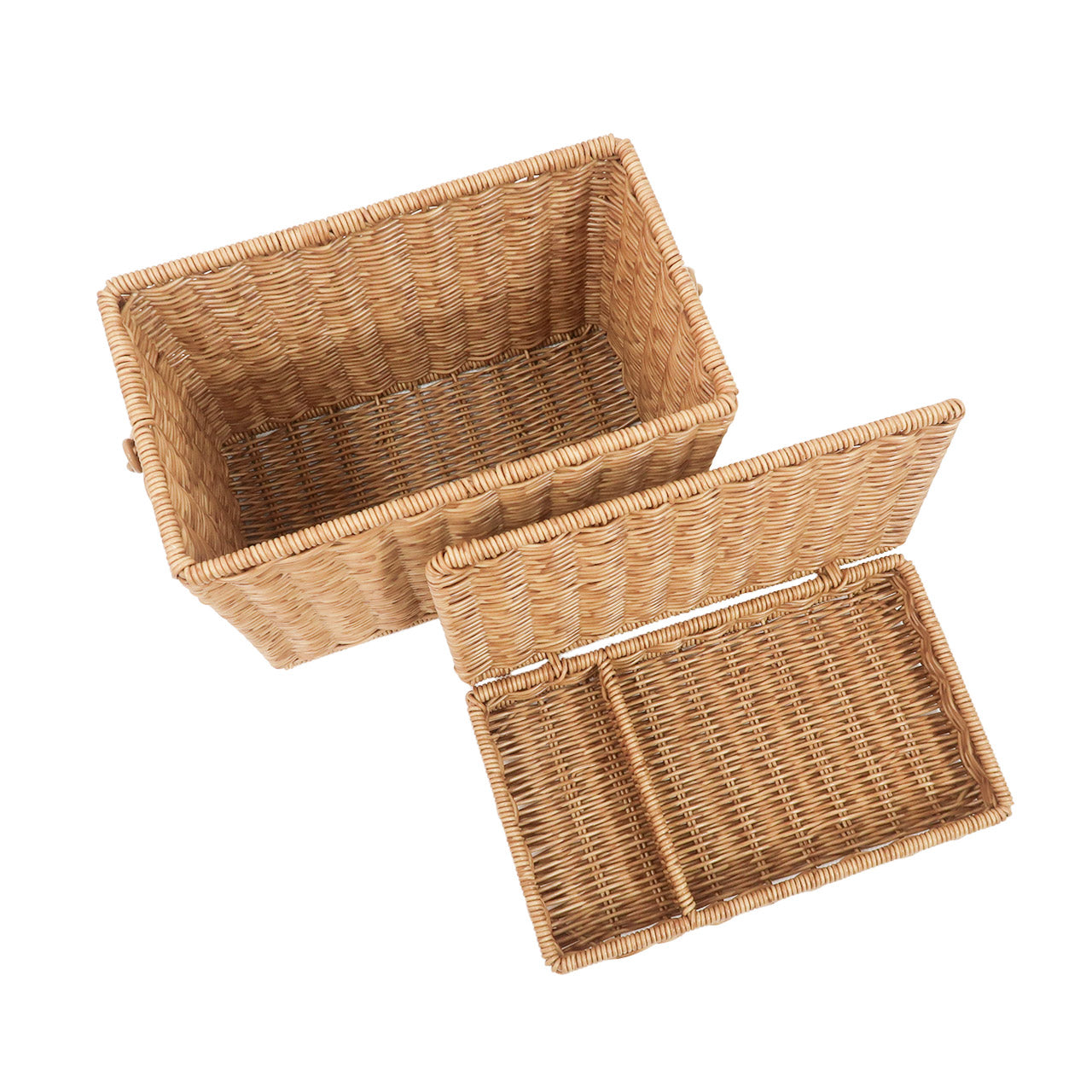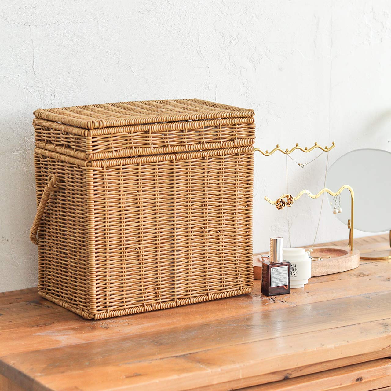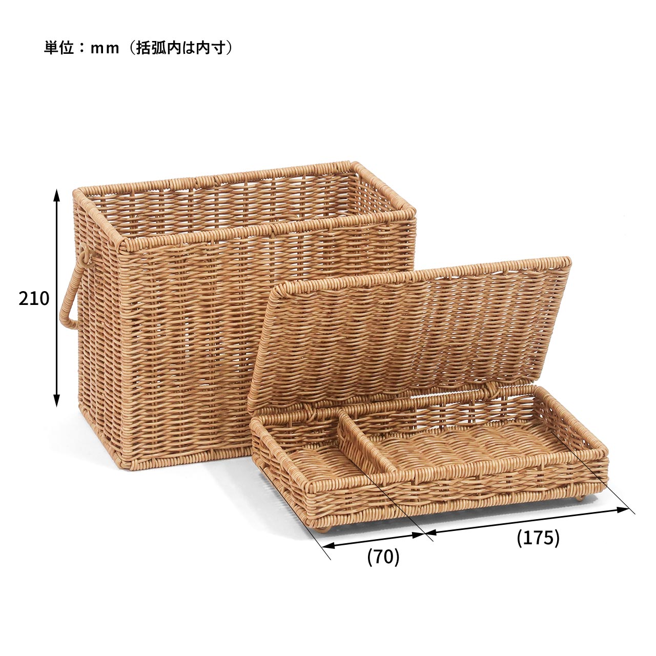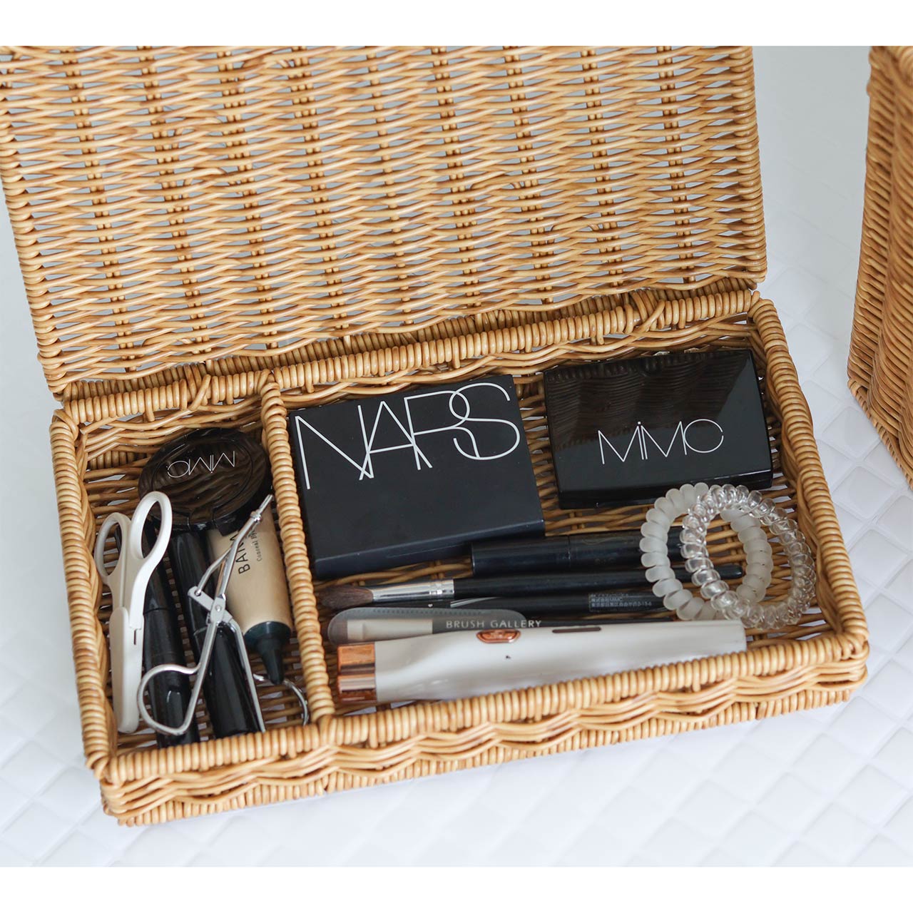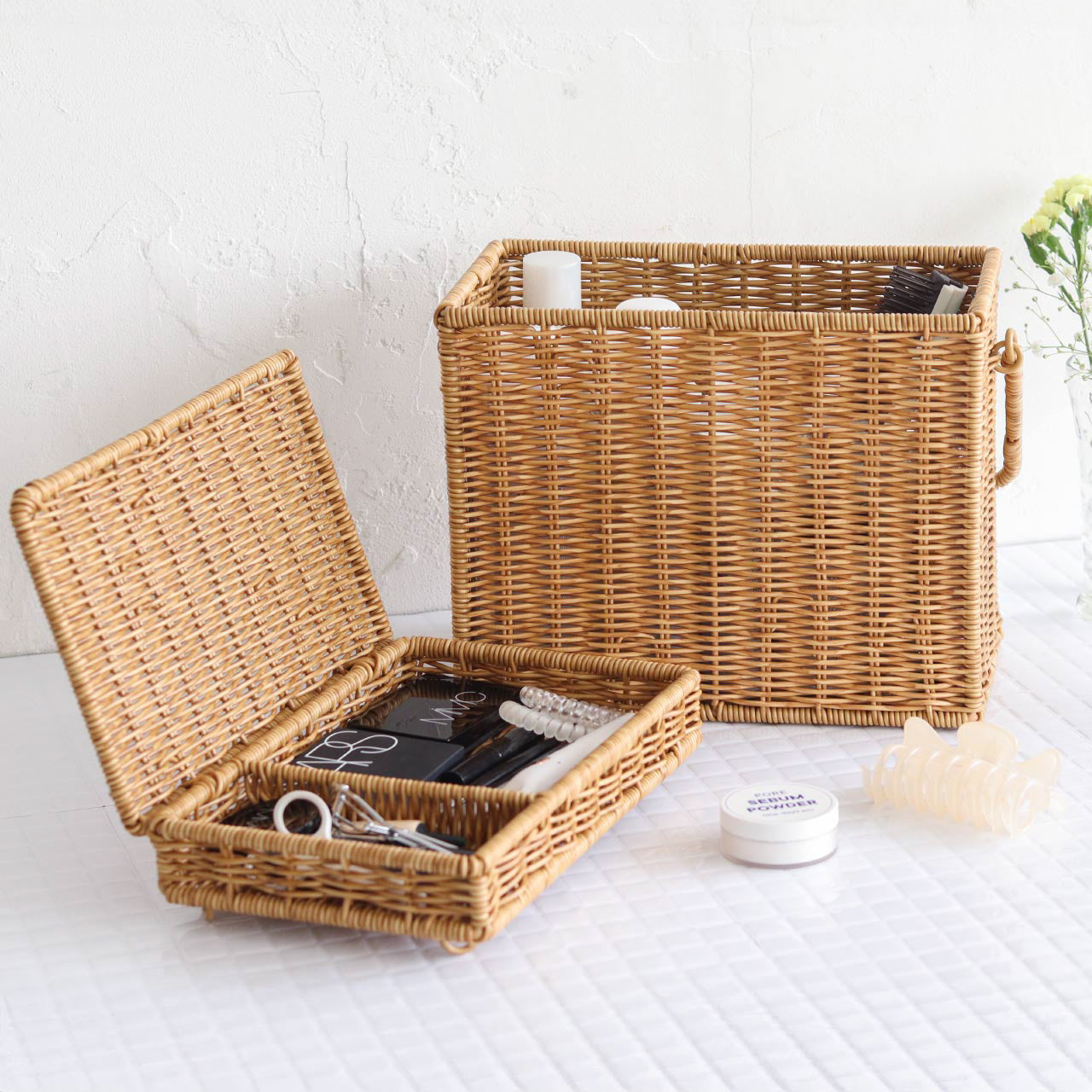 ユティルシリーズに、収納力抜群の持ち手付きコスメボックスが登場しました。毎日のメイク道具がこれ一つで全て収まる、大容量のコスメボックス。水に強いポリプロピレン・ポリエチレンチューブを使って手作業で編まれているので、使用中に汚れてしまっても水洗いができるので安心。(※濡れたままの状態で長期間放置すると錆の原因となります。洗浄後はよく乾燥させてください。)取り外し可能な2段式なので、細々としたメイク道具がスッキリ片付きます。上段には、アイシャドウやチーク、ブラシなどの収納に。下段には、スプレー缶や化粧水ボトルなど高さのある物の収納におすすめです。(高さ18cmまでの物は立てて収納が可能です。)奥行き16cmのスリムなサイズ感と、一見メイクボックスに見えない佇まいが、出しっぱなしでも気にならず、自然にインテリアに溶け込んでくれます。持ち手付きなので、リビングや寝室など様々な場所で気軽にメイクをお楽しみいただけます。メイクボックス以外にも、ソーイングボックスや工具箱、お子さまのお道具箱としてもおすすめです。