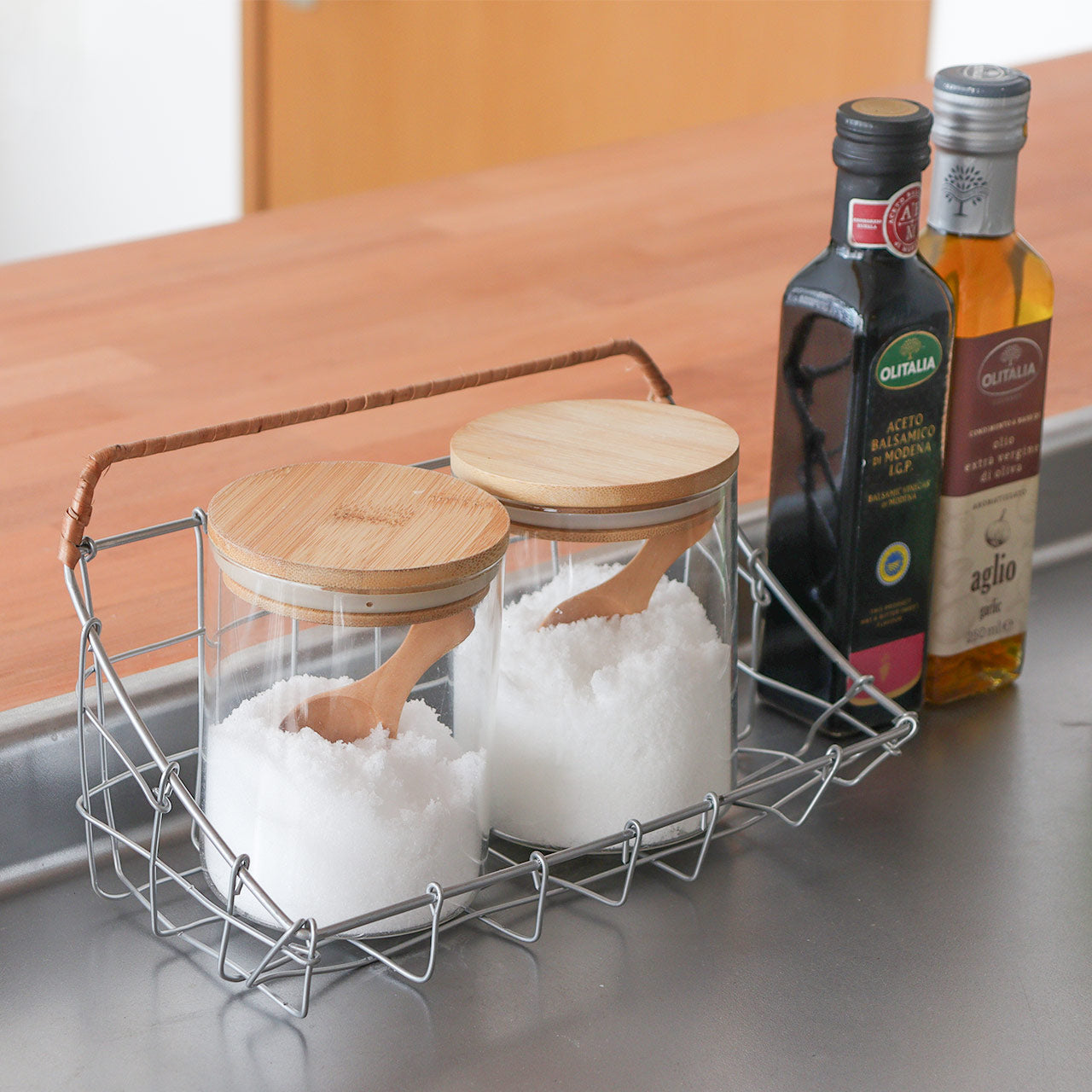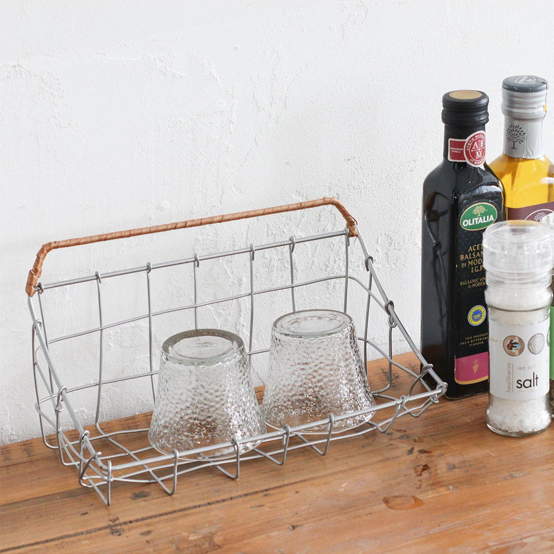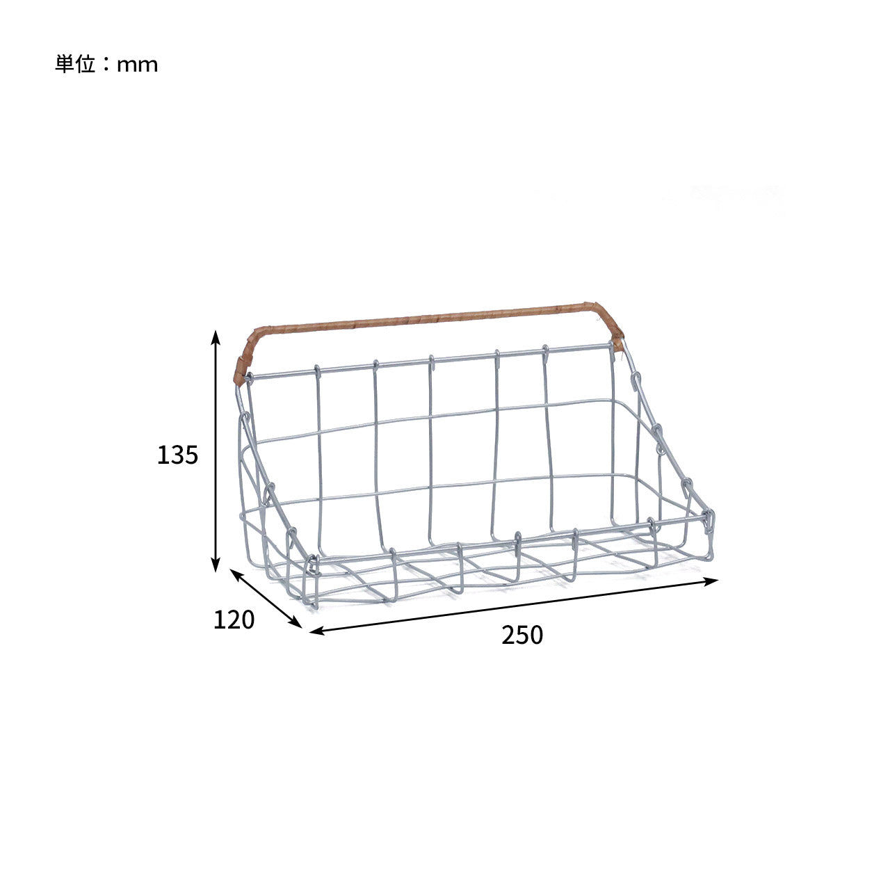 ワイヤーで編まれたウォールシェルフ型のバスケット。Dusaule(デュソール)シリーズは落ち着いたシルバー塗装で仕上げ、アクセントに柳を使ったワイヤーバスケットです。統一感のないものでもワイヤーバスケットに入れることでまとまりが生まれ、お洒落なカフェのような雰囲気に。壁にフックなどで固定してウォールシェルフとして使ったり(※取り付け用のビスは付属しません)、キッチンでは卓上に置いて調味料やよく使うコップを入れたりなど、収納かごとしてもお使いいただけます。大きさはSサイズ(幅 約25cm)とLサイズ(幅 約38cm)の2サイズ。同じサイズで並べたり、2サイズ組み合わせてお使いいただくのも統一感が出ておすすめです。