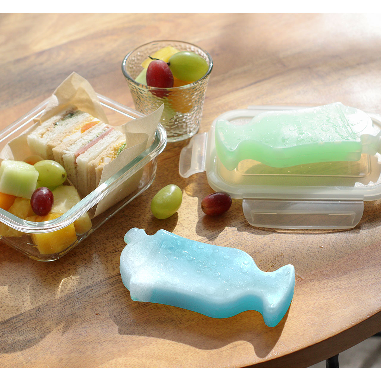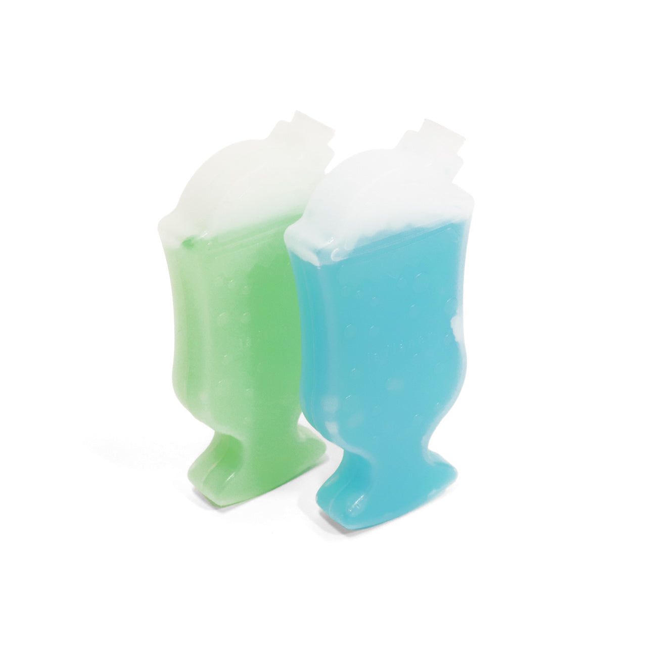 クリームソーダの形をしたハードタイプのミニ保冷剤。ブルー/グリーンの2個セット。お弁当の持ち運び時の温度管理にぴったりなハードタイプのミニ保冷剤(0℃タイプ)です。【0℃タイプとは?】一般的なマイナス温度の保冷剤と異なり、食品を凍らせずに適温で冷却できるのが特徴です。ご飯やおかずの食感を損なわず、冷えすぎによる味の変化を防ぎます。お弁当に使用する際は、ゴムバンドでお弁当箱の上に固定すると、より高い保冷効果が得られます。また、ハードタイプのため破れる心配がなく、繰り返し使用可能。経済的かつ環境にも優しいアイテムです。ソーダの上にアイスが浮かぶシルエットがかわいいクリームソーダのデザイン◎お弁当はもちろん、デザートや飲み物、アウトドアやピクニックシーンでも活躍。同シリーズの保冷ポーチと合わせて使用するのもおすすめです。