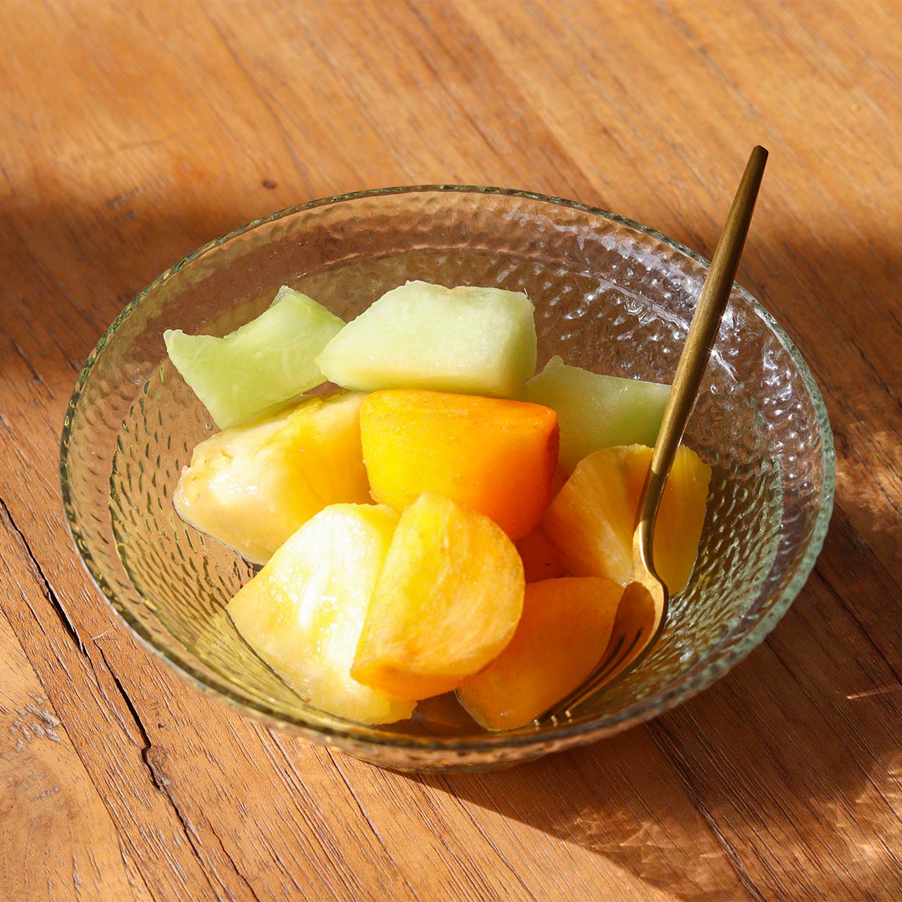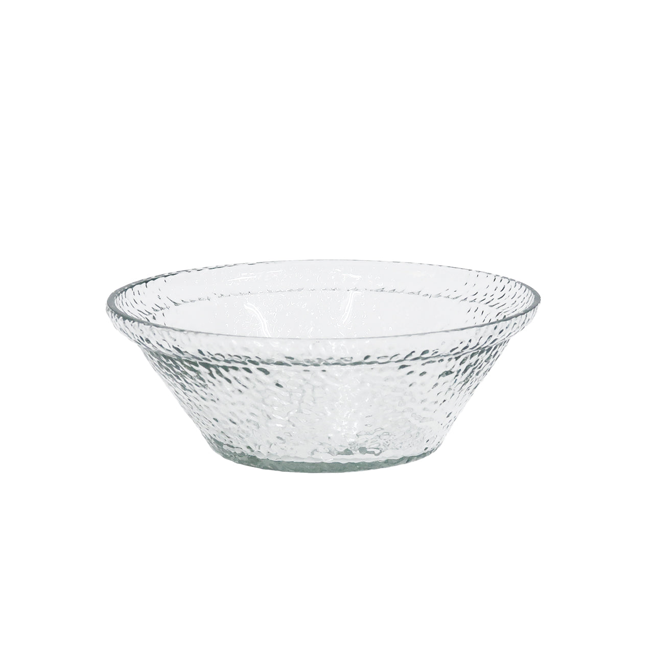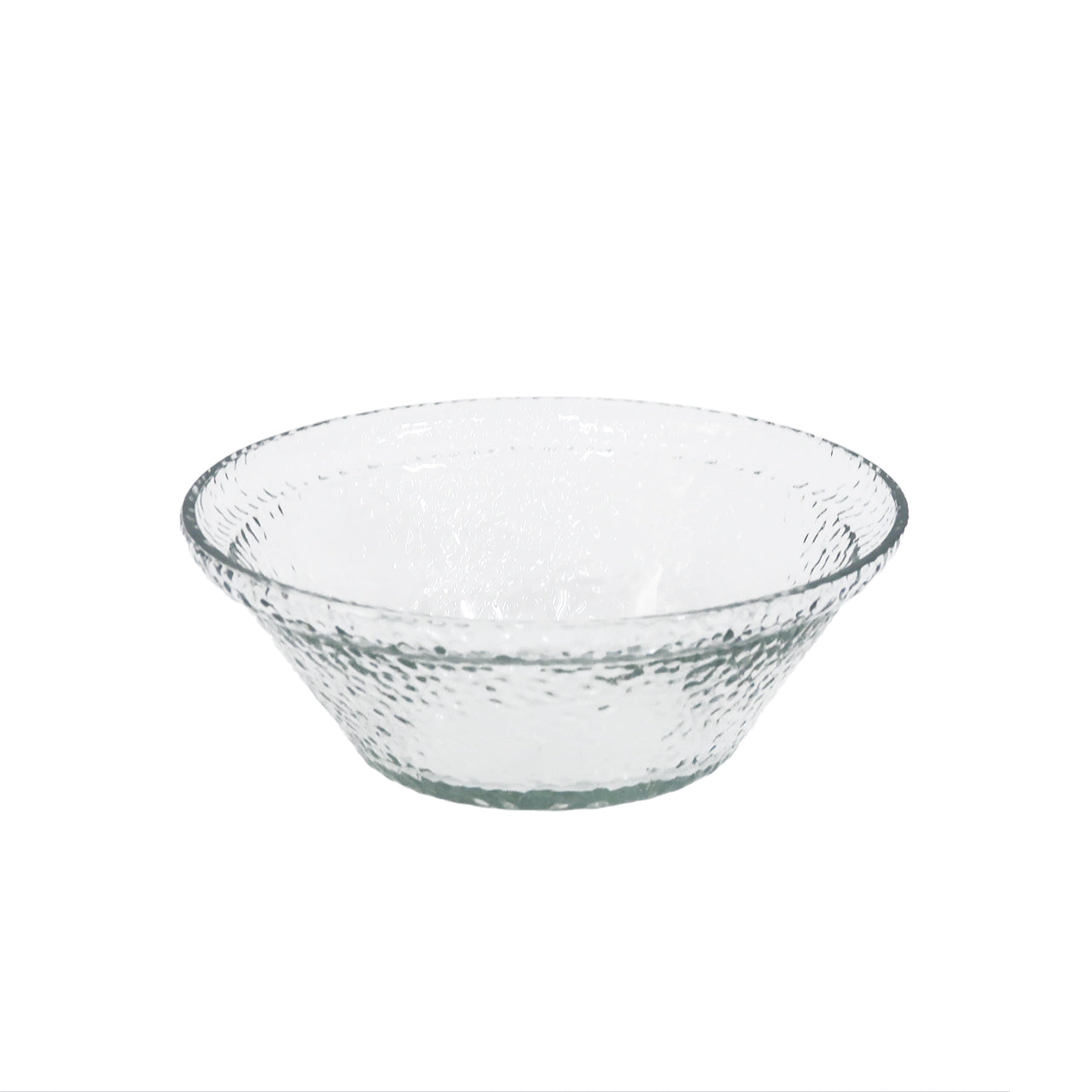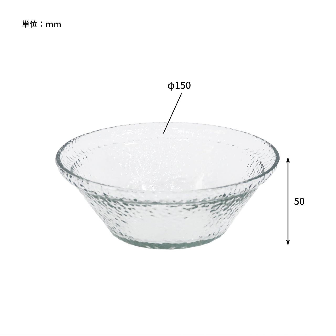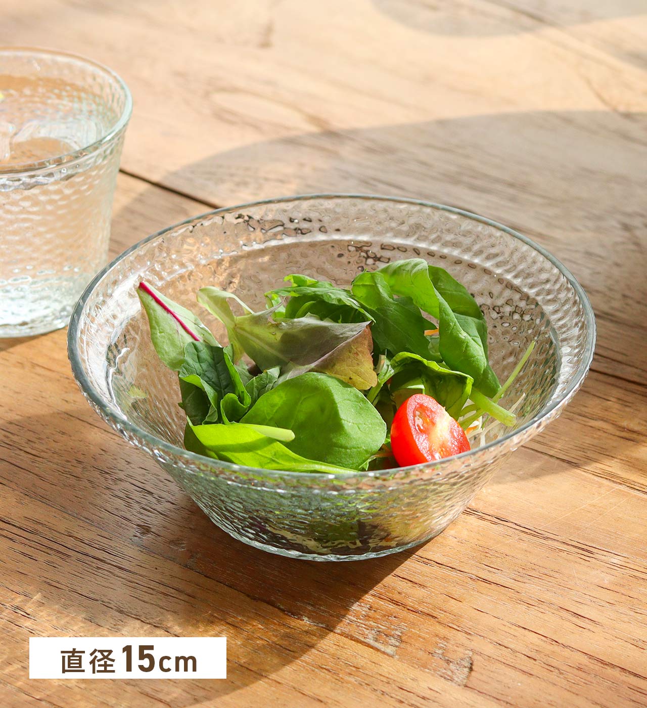 凹凸のあるテクスチャーが涼しげなガラスボウル。サラダボウルとして使いやすい直径約15cmの小ぶりなサイズ感。やや深さもあるので、フルーツやヨーグルトなどの器としてもおすすめです。ガラス表面に施された凹凸に光が当たると、キラキラとした影を落とし、いつもの食卓をより華やかに演出してくれます。同じSceneryvase(シナリーベース)シリーズで揃えてご使用いただくと統一感が出ておすすめです。