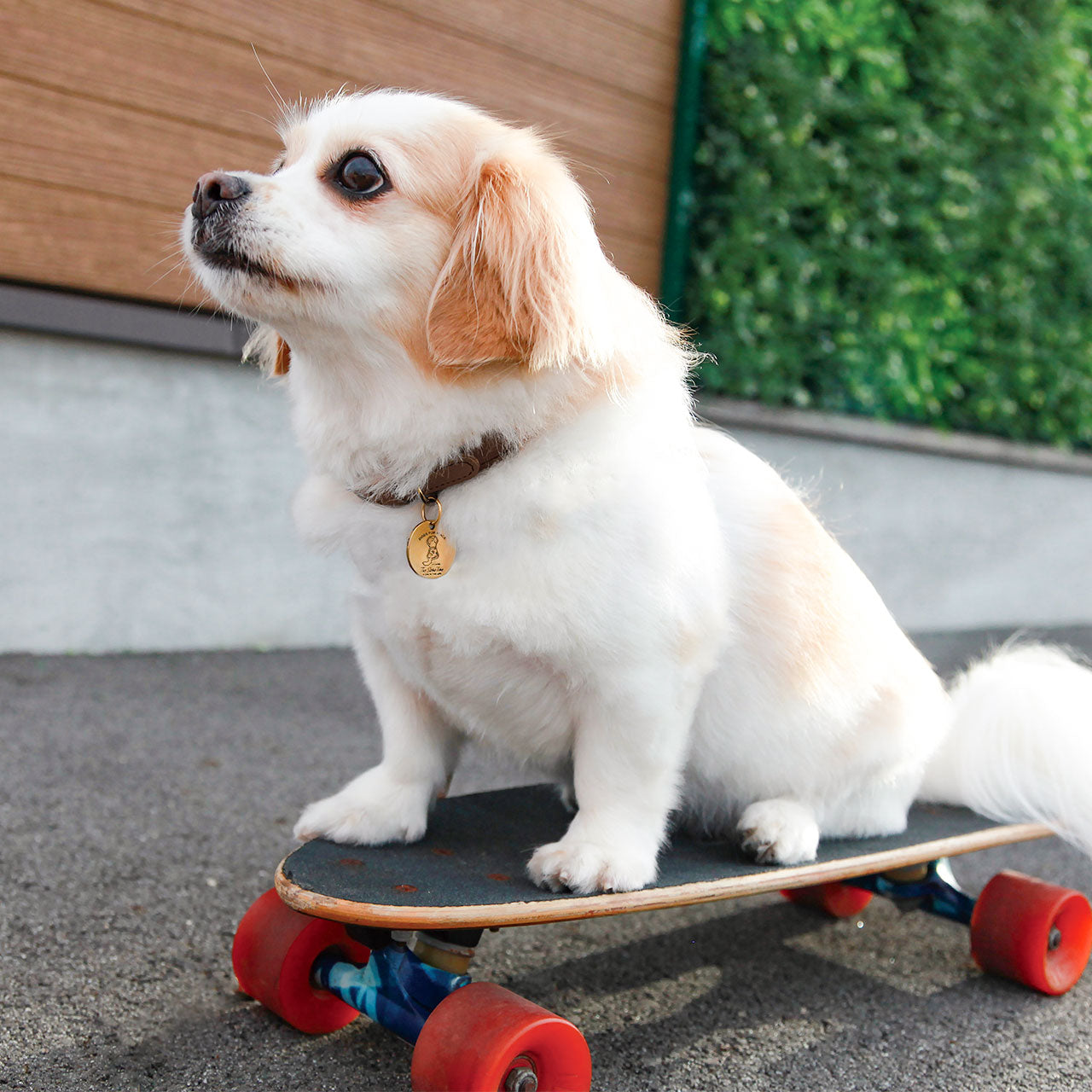 山登りやフリークライミングで命綱としても使われているロープと、上質な日本製の牛革を組み合わせたハンドメイドの首輪です。安全性と耐久性の高さを基準に素材選びを行いました。ブランドアイコンの真鍮チャームがアクセントになっています。
