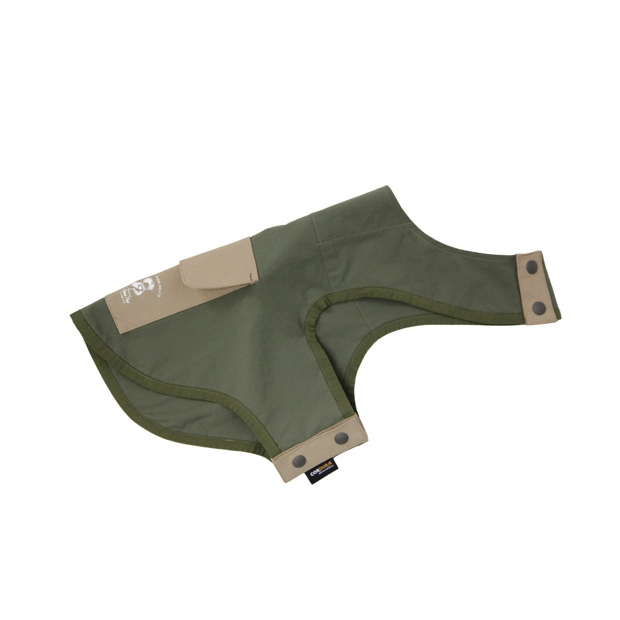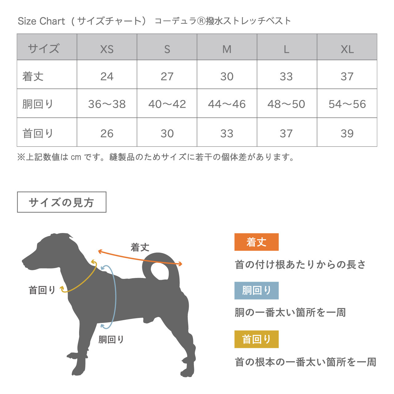 耐摩擦性・撥水性などに優れたコーデュラ生地を使用したベストです。ストレッチ性がありサイドのボタンでサイズ調整ができるので着替えも簡単。首のうしろに設けたポケットに保冷剤を入れることも出来るので、夏場のお散歩やお出かけにも重宝するベストです。