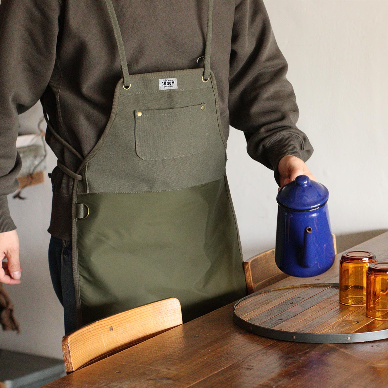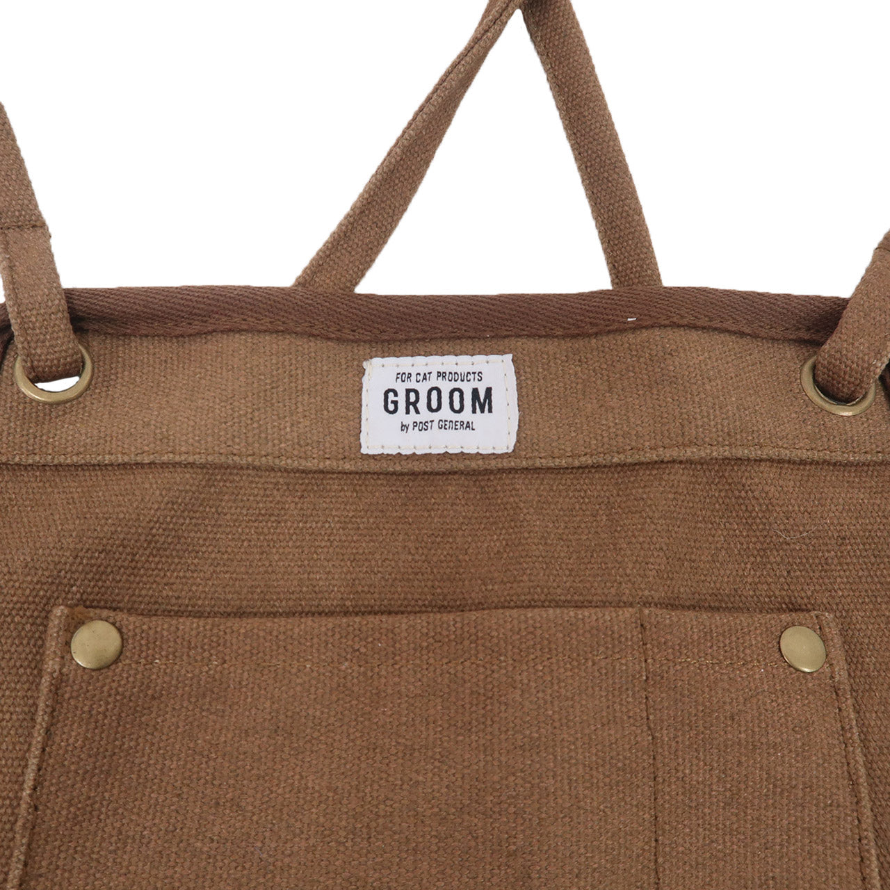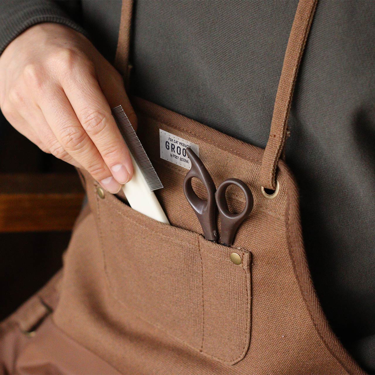 猫の爪切りや、ブラッシング等のお世話をする際に便利なエプロン。胸元にポケットがあり、ハサミやブラシなどお世話で使うアイテムの収納が可能。裾のボタンを留めることで、エプロンがチリトリ状になり、爪や毛などがとびちりにくい形になります。チリトリ部分の素材も毛のつきにくい素材になっていますのでお世話がしやすくなります。料理用のエプロンなど普段使いにも違和感の無いデザインです。