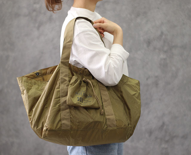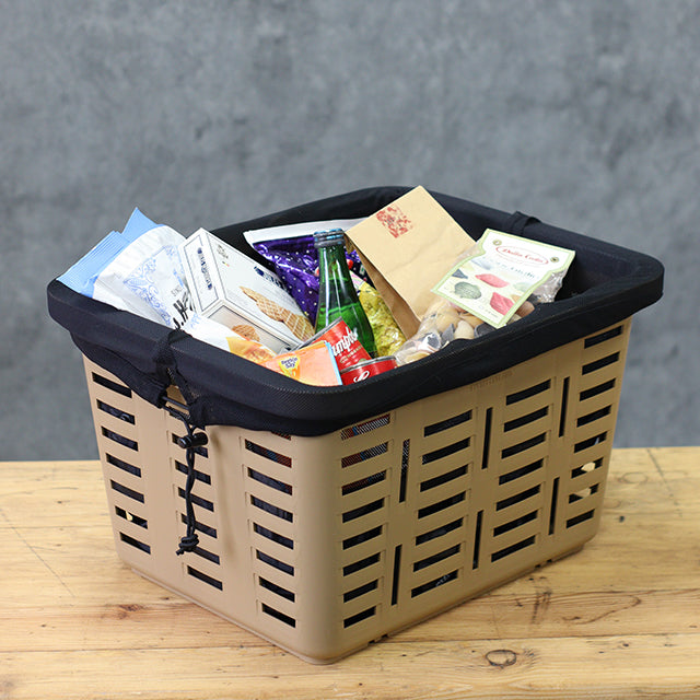 レジ袋有償化に伴い、レジバスケットの専用バッグは必需品。 男性でももちやすいシンプルなデザインに仕上げました。 冷凍食品など濡れた物も収納しやすいように 水に強い210T ポリエステル生地を使用しました。 一体型のポケットへコンパクトに収納でき、袋がなくなる心配もありません。 一般的なスーパーのレジバスケットにセットできる汎用サイズです。 〈容量約30L〉