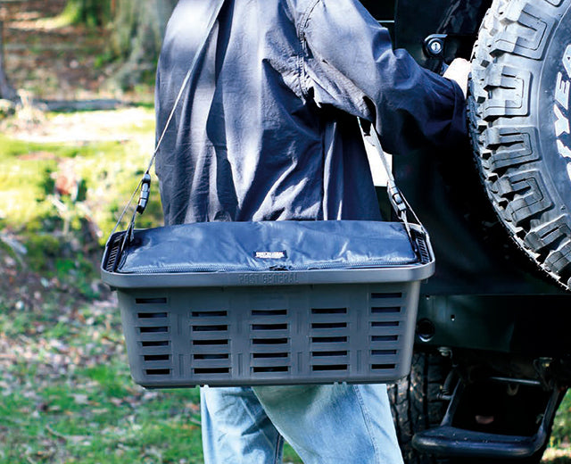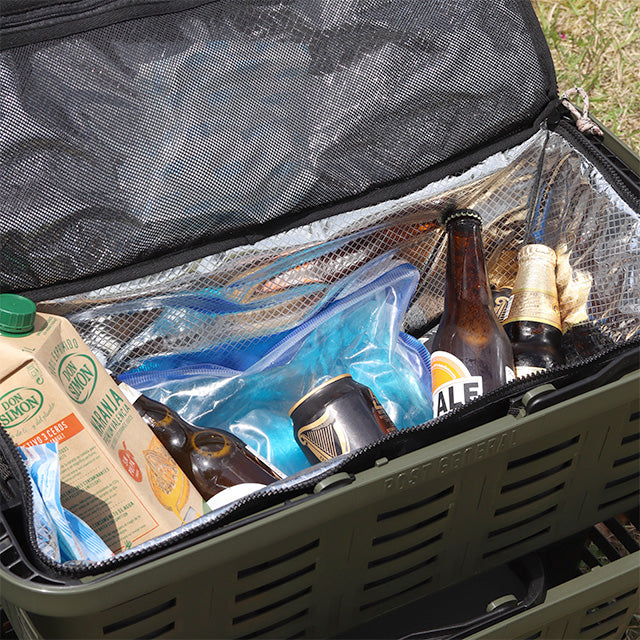 ヘビーデューティーバスケットロング専用サイズの保冷バッグです。 バスケットに保冷バッグをセットした状態でハンドル、ショルダーベルトでの持ち運びが可能に。 日々の食料品の買い物や、ピクニック、キャンプシーンに最適です。 セットした状態でバスケット同士のスタッキングが可能なため キャンプシーンの整理整頓にもおすすめです。 〈容量約20L〉