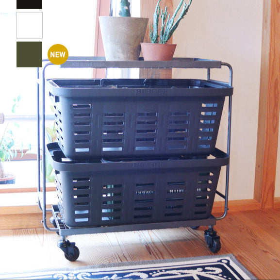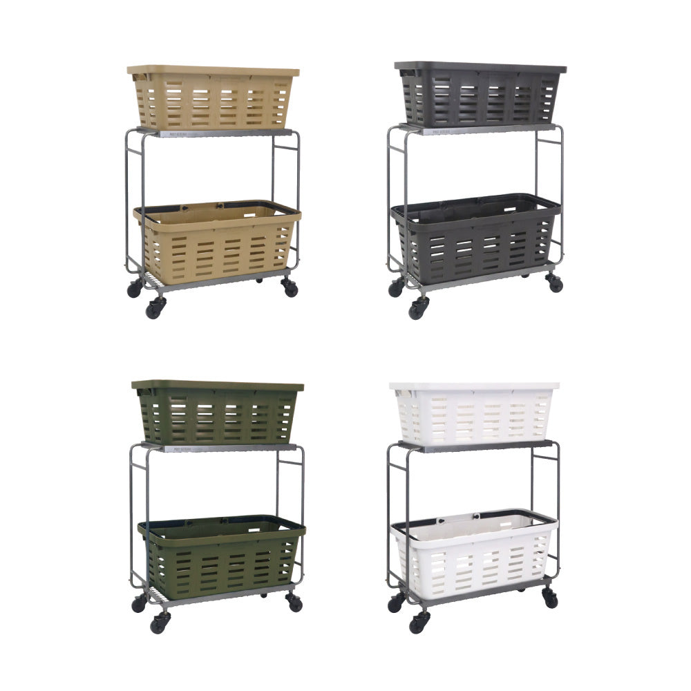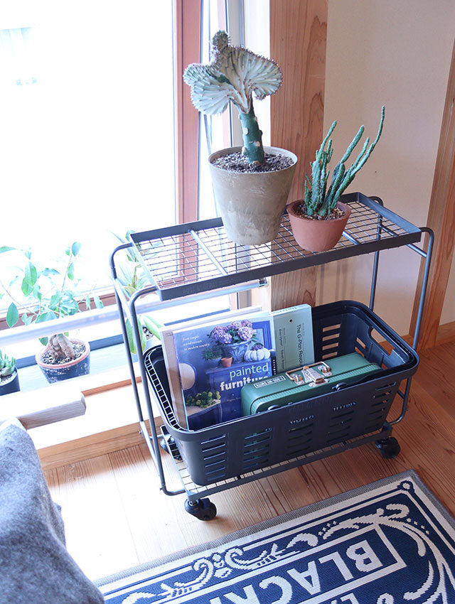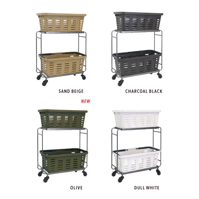 HEAVY DUTY BASKET LONGサイズ専用のシェルフ型ワゴンとHEAVY DUTY BASKET LONGが2個付属したセット商品が新登場。 各棚に1個セットしたり下段にスタックしたバスケットを2個セットしたりと用途に合わせて使い方も変えれる仕様になっています。 インテリアワゴンとして、プランターワゴンとして、ランドリーワゴンとして。 さまざまなライフシーンでお使い頂けます。 奥行きも29.5cmなので、ちょっとした隙間に収納を置きたい場合にも丁度良いサイズ感です。 バスケットのカラーは全4色。どれも使いやすい落ち着いたカラーです。