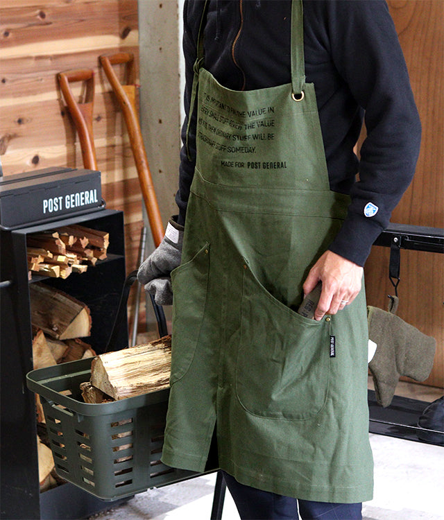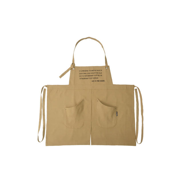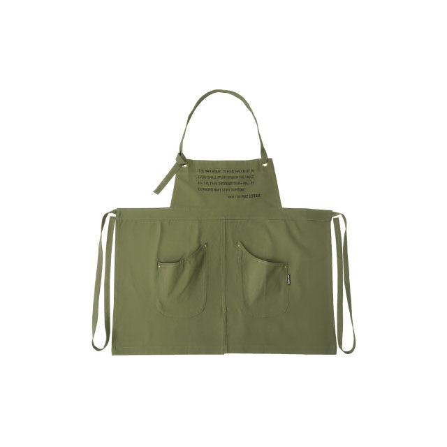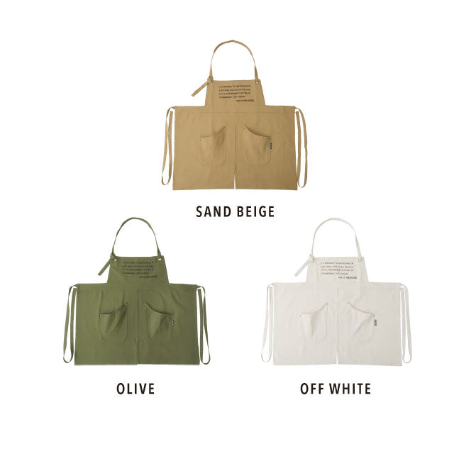 ワーク×ミリタリーテイストにビンテージ感を加えたワークエプロン。 マチ付きのルーズなシルエットのポケットをデザインアクセントに。 胸元は少し浅めのサイズ設計で男性も着やすいフォルムに拘りました。 胸当てを内側に折り畳むことでギャルソン型エプロンとしても使えます。 胸元のミリタリー調のデザインがワンポイントに。 ポケットも大きめサイズなので、作業中に必要な工具なども収納が可能です。 カラーは全3色。どれも合わせやすい落ち着いたカラーです。